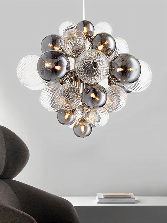 25 Light Silver Metal Smokey Clear Glass Chandelier
