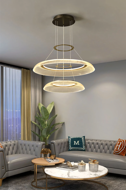 2 RING ACRYLIC GOLD LED HANGING CHANDELIER