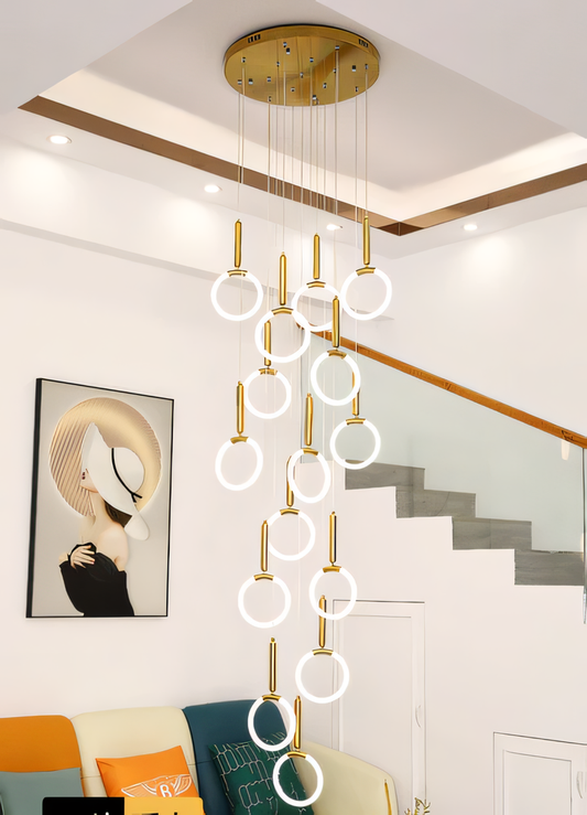 10-Light LED Ring Gold Double Height Long Chandelier
