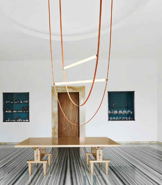 Tan Color Leather Belt Chandelier Hanging Lamp