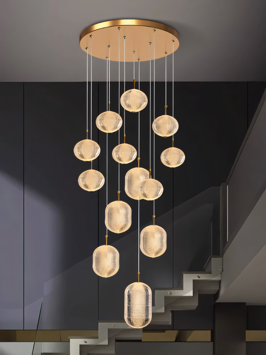 24 Light LED Round Acrylic Double Height Stair Chandelier
