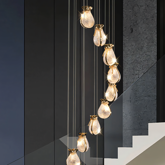 600 MM Long Crystal Glass Gold LED Chandelier Hanging Suspension Lamp