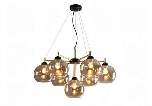 7 Light Gold Black Amber Glass Chandelier Ceiling Hanging Lights