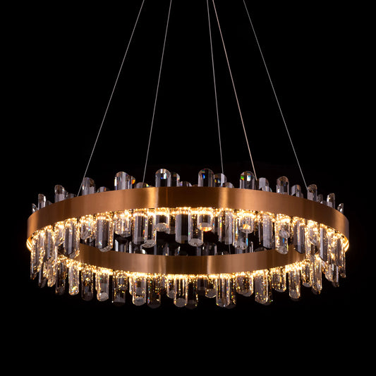 Through The Fire (Large, Gold, Dimmable LED with Remote Control) 2- Layer Crystal Chandelier