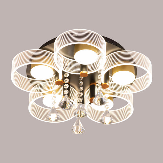 Meet And Greet (Gold, Dimmable LED with Remote Control, 5 Head) Crystal Ceiling Light