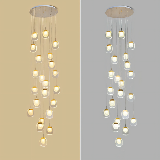 25-Light LED Acrylic Gold Double Height Stair Chandelier