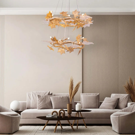 Falling For Flowers (Large, Gold) 1,2-Layer Tree Branch Crystal Chandelier