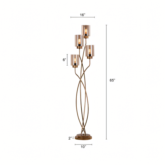 Twisted Cluster (Antique Gold Finish, Amber Glass) Floor Lamp