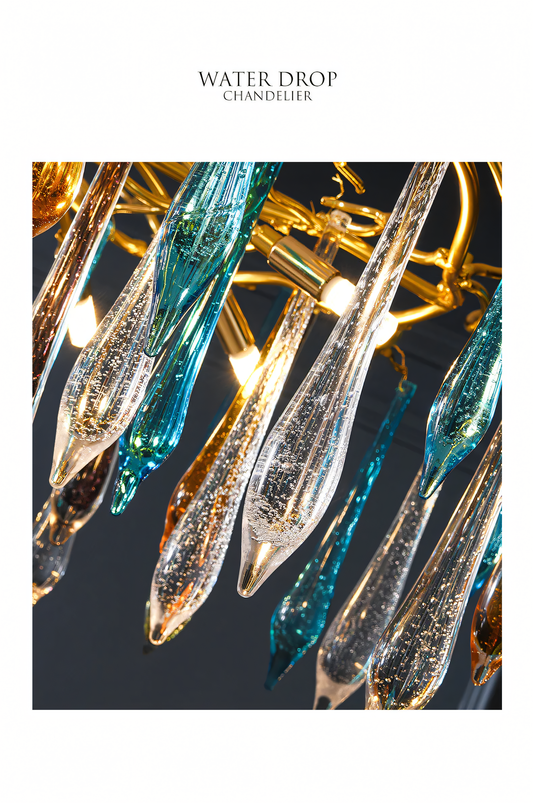 600 MM Long Crystal Spike Glass Gold Metal LED Chandelier Hanging Suspension Lamp