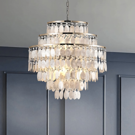 Gratus Luxe White Glass Leaf Oval Chandelier