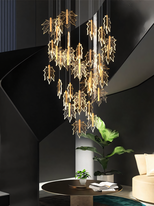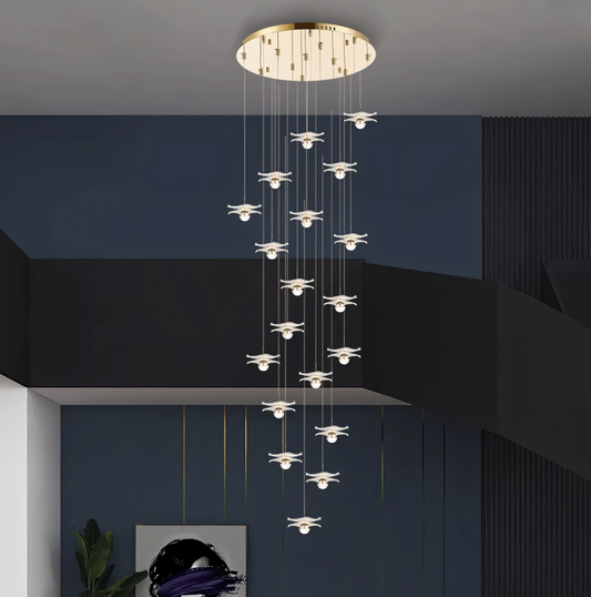 31-Light LED Acrylic Gold Leaf Double Height Stair Chandelier