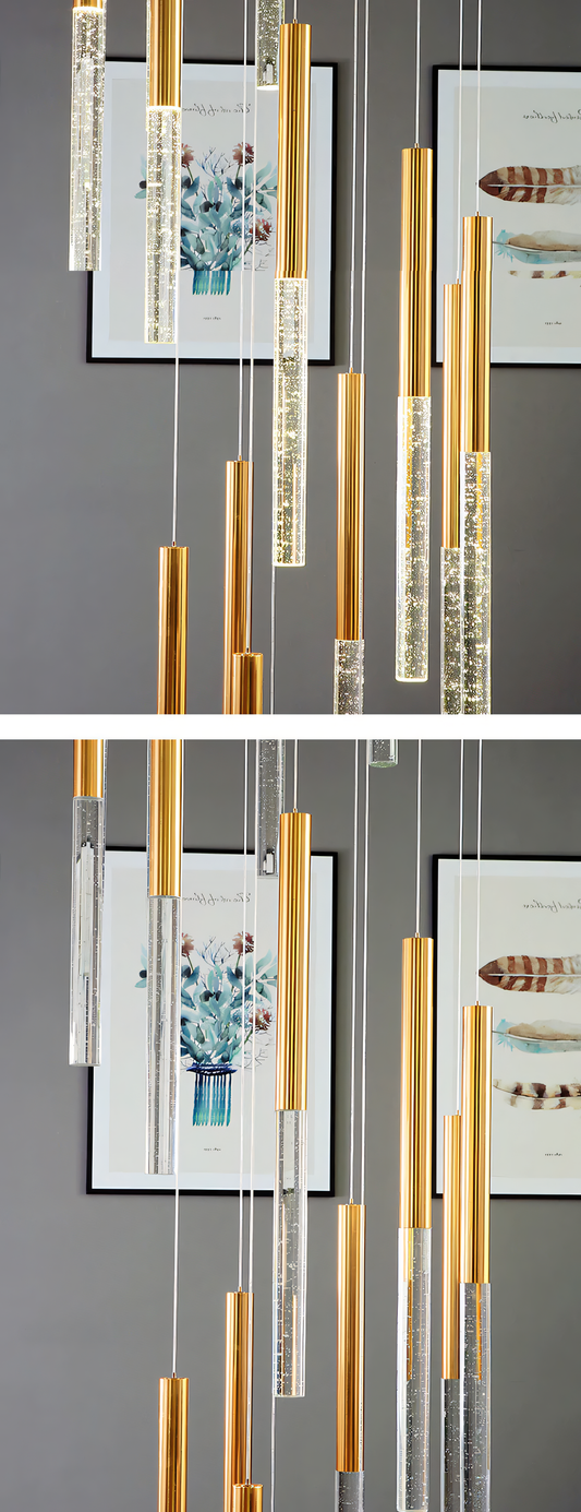 12 -Light LED Gold Long Crystal Double Height Stair Chandelier