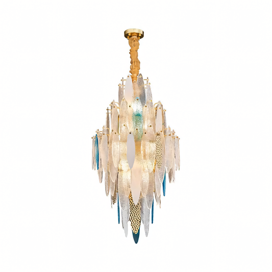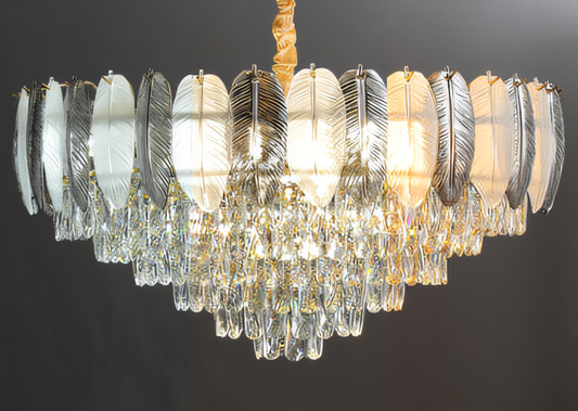 600 MM Feather Glass Crystal Gold Metal LED Chandelier Hanging Suspension Lamp