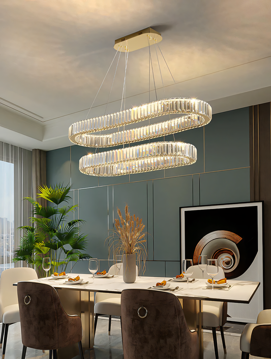 600 MM Long Crystal Glass Gold LED Chandelier Hanging Suspension Lamp