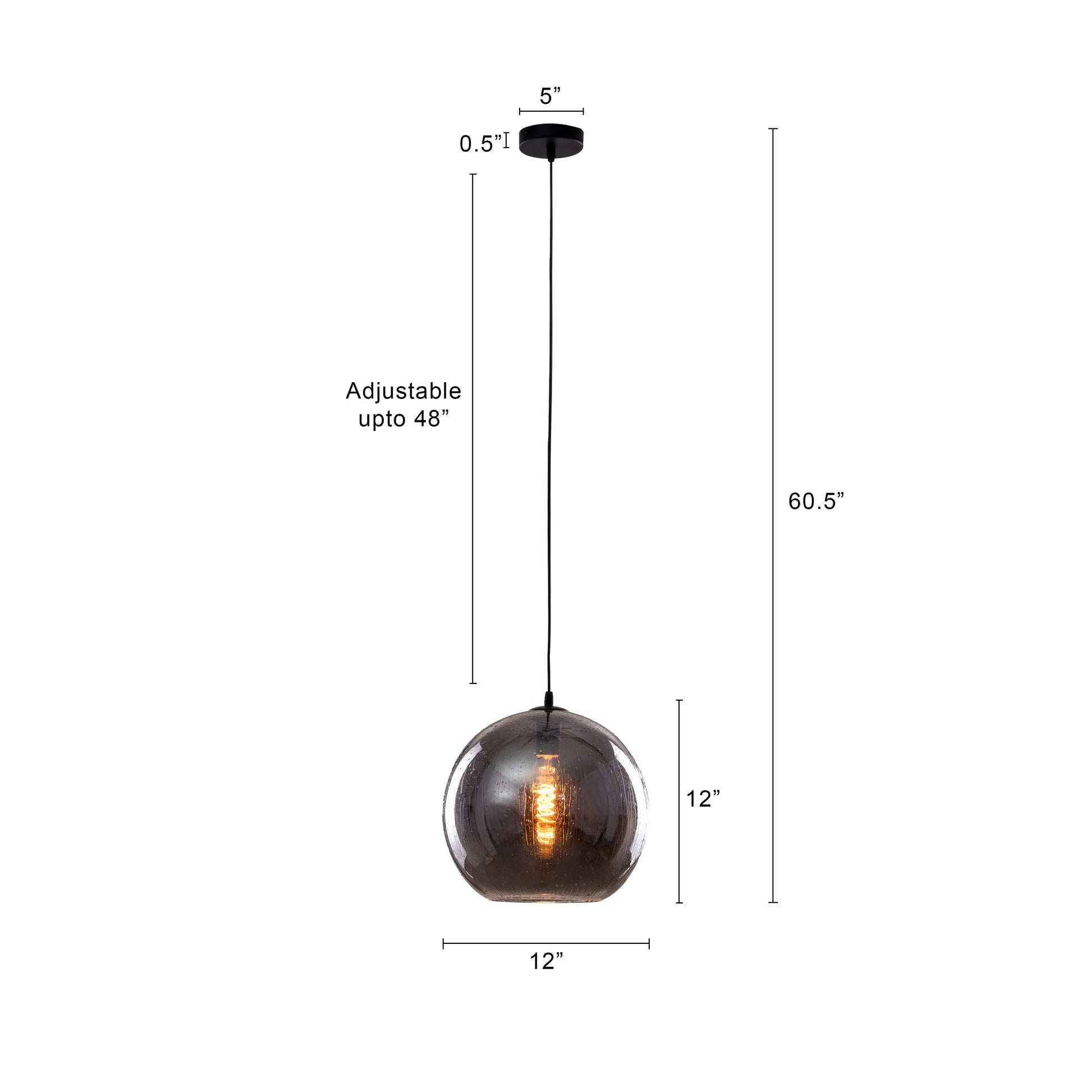 | Product Dimensions | Overall Dimensions- Height: 60.5" Frame Dimensions- Height: 12" Diameter: 12” Ceiling Cup Dimensions- Height: 0.5" Diameter: 5" Cord Length: 48" (Adjustable) |