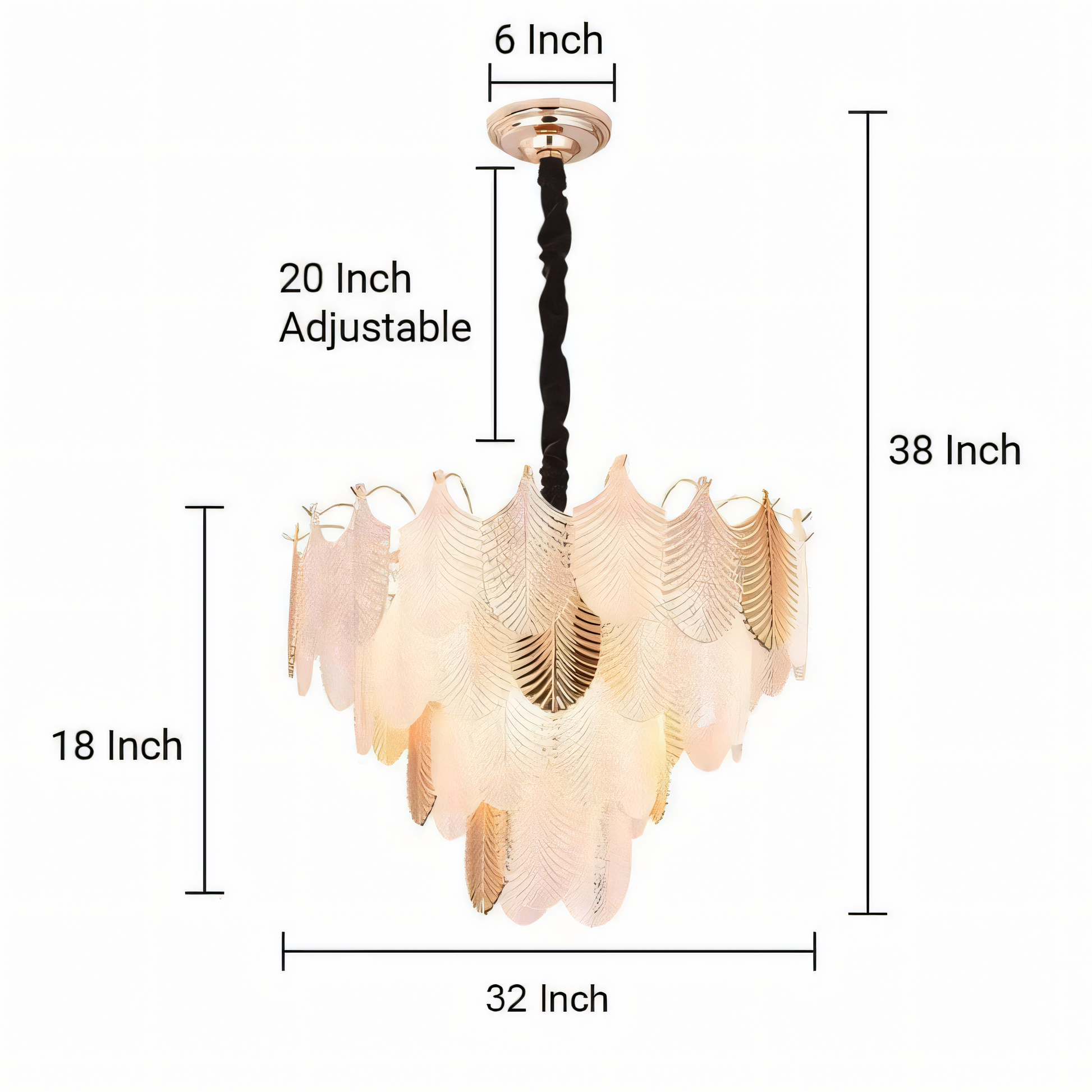- Sophisticated Fusion of White Glass and Golden Metal: The beach view double step chandelier goes beyond aesthetics with its fusion of white glass pendant leaves and golden metal shaped like delicate leaves.