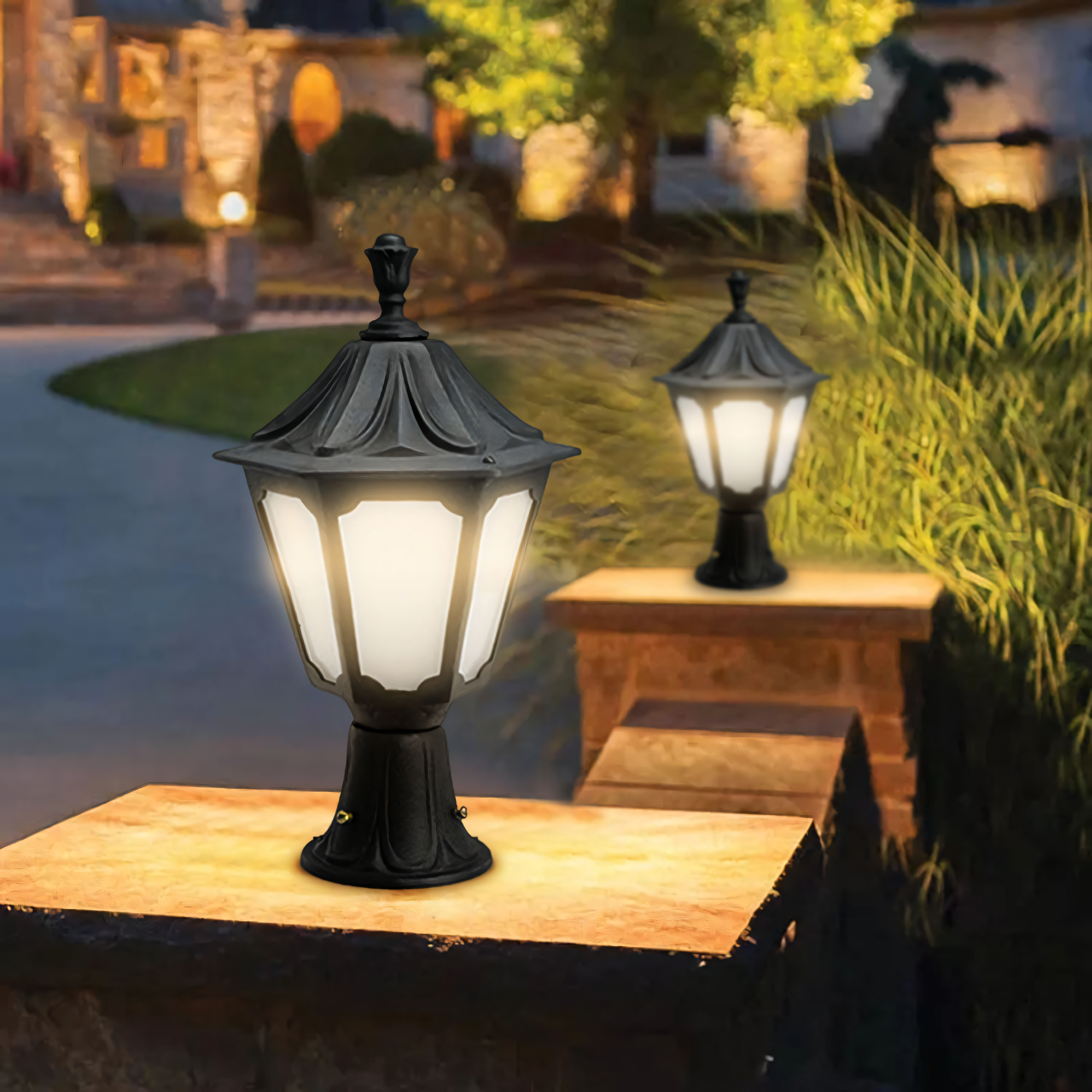 Forged from the finest black metal, the Bern Gate Light's sleek and refined silhouette effortlessly blends timeless elegance with contemporary flair. The intricate detailing on the frame, reminiscent of the delicate icicles that adorn the Ice Castle's towers, adds a touch of whimsical allure, while the warm glow of the LED illumination casts a mesmerizing spell over the icy landscape.