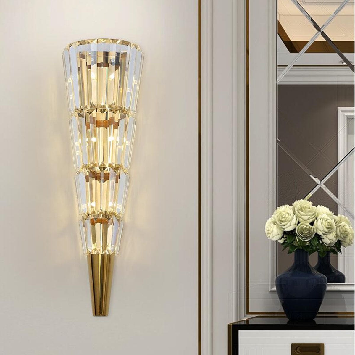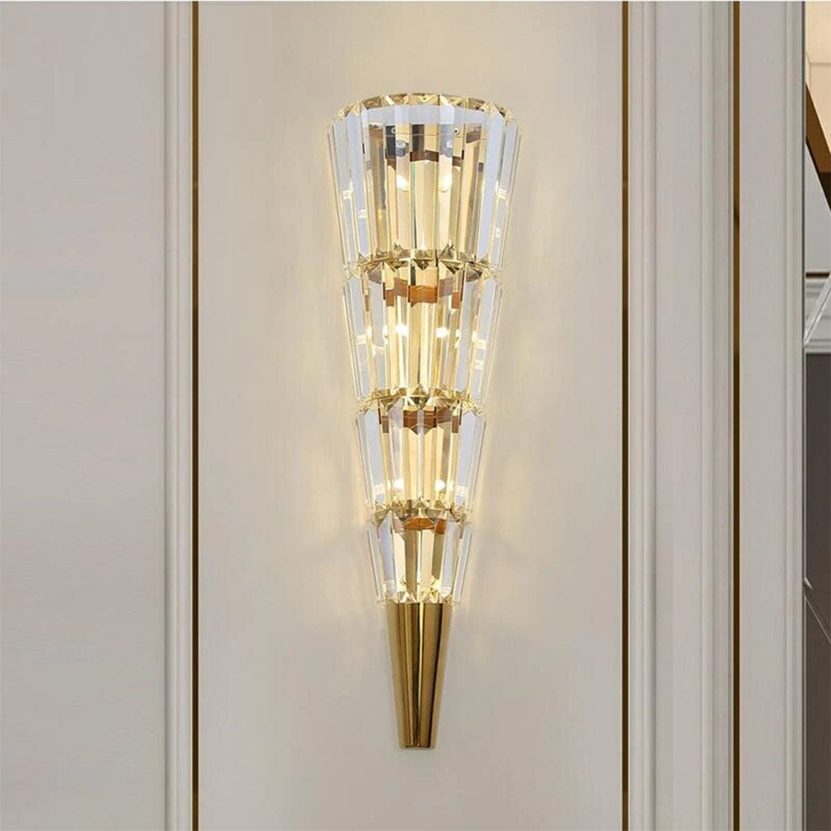 - Elegant Design: The Crystal Strobile Wall Light boasts a captivating strobile-shaped frame crafted with precision and attention to detail. Its graceful lines and sparkling crystals create a dazzling visual display.