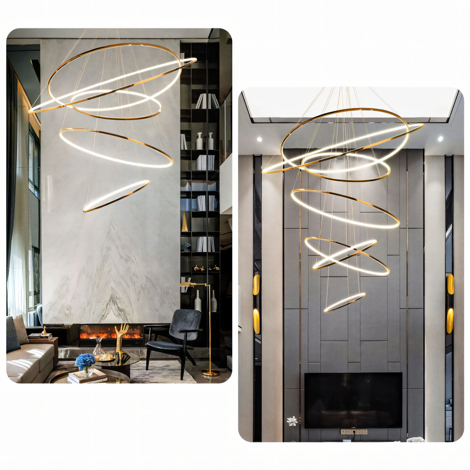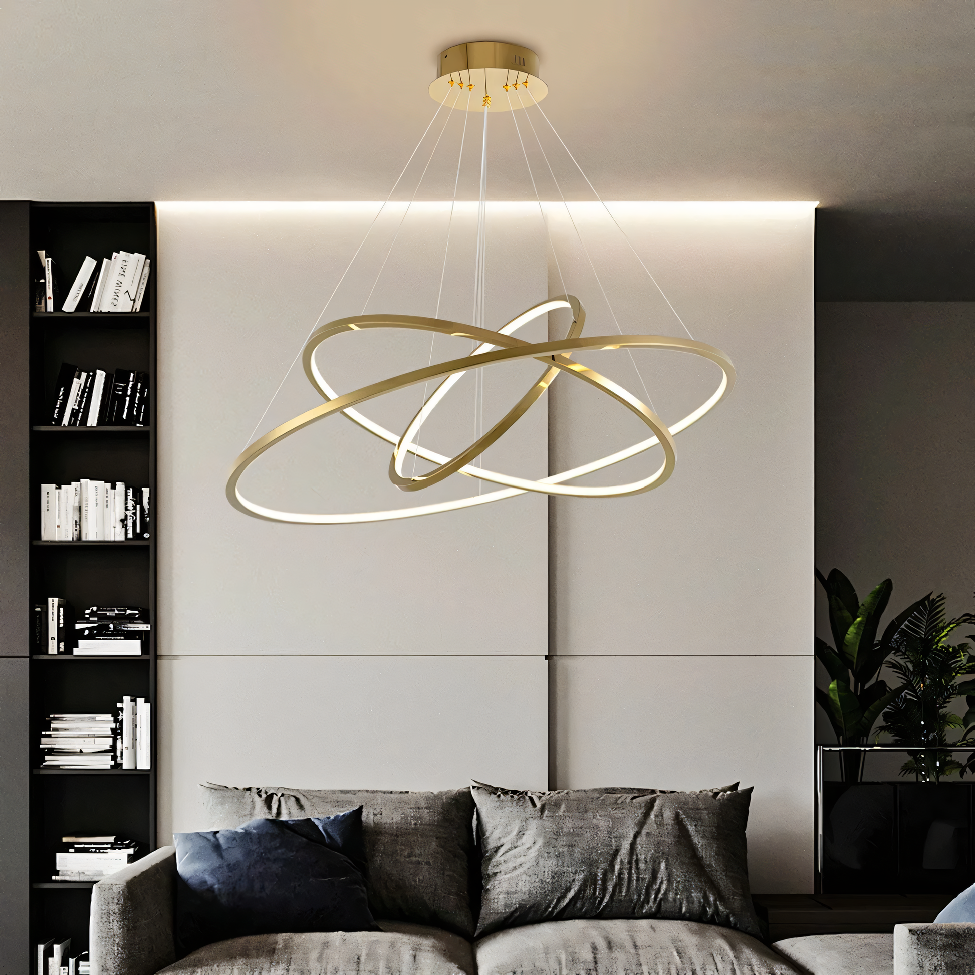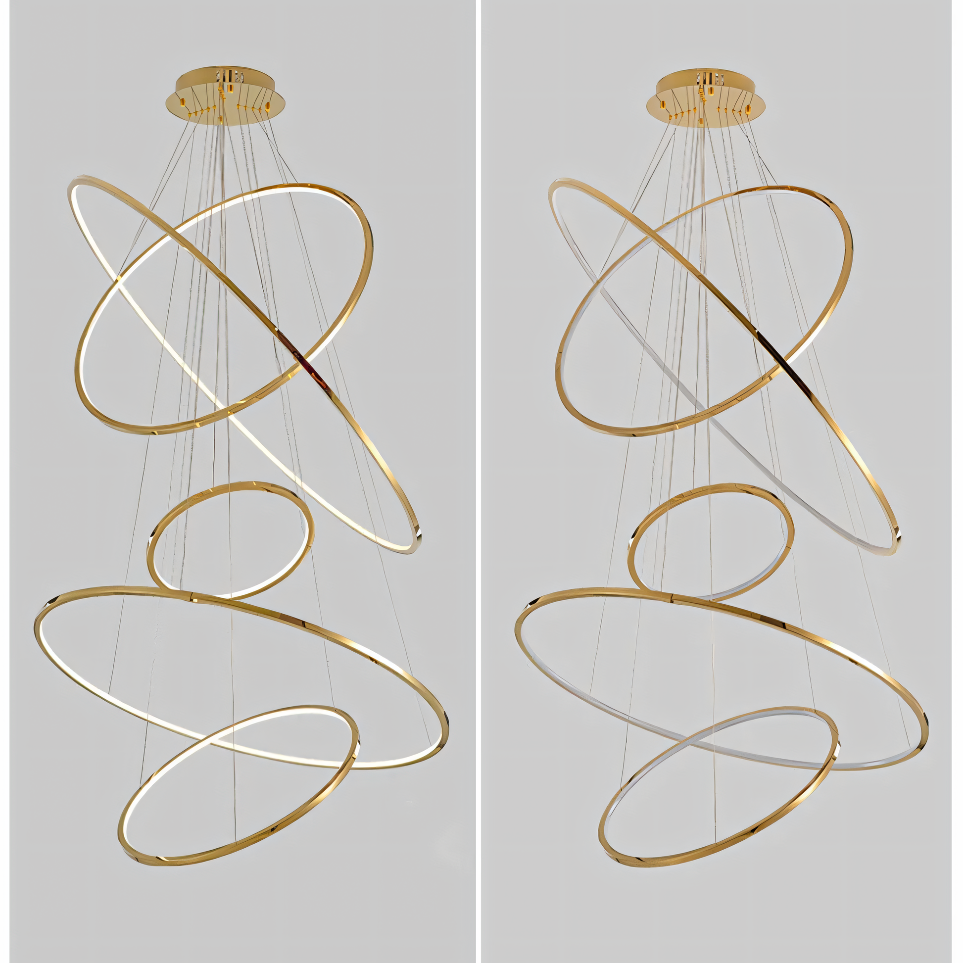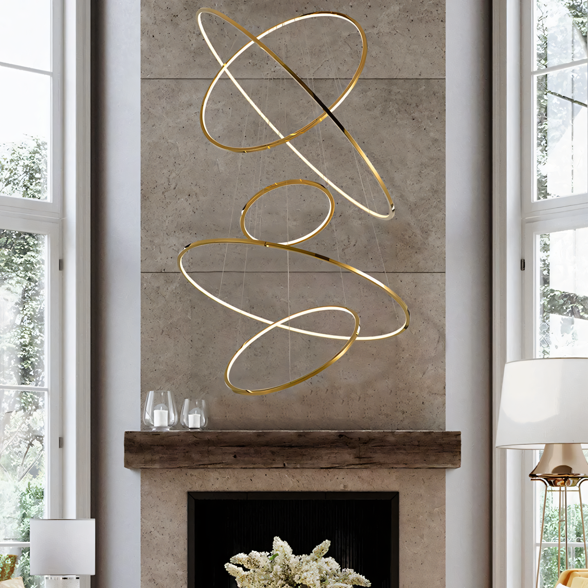 Sculptural Brilliance: Elevate your space with the Nehza Ring Chandelier, a captivating display of multiple rings designed to redefine modern elegance. The sculptural brilliance of this chandelier transforms any room into a statement of contemporary sophistication.