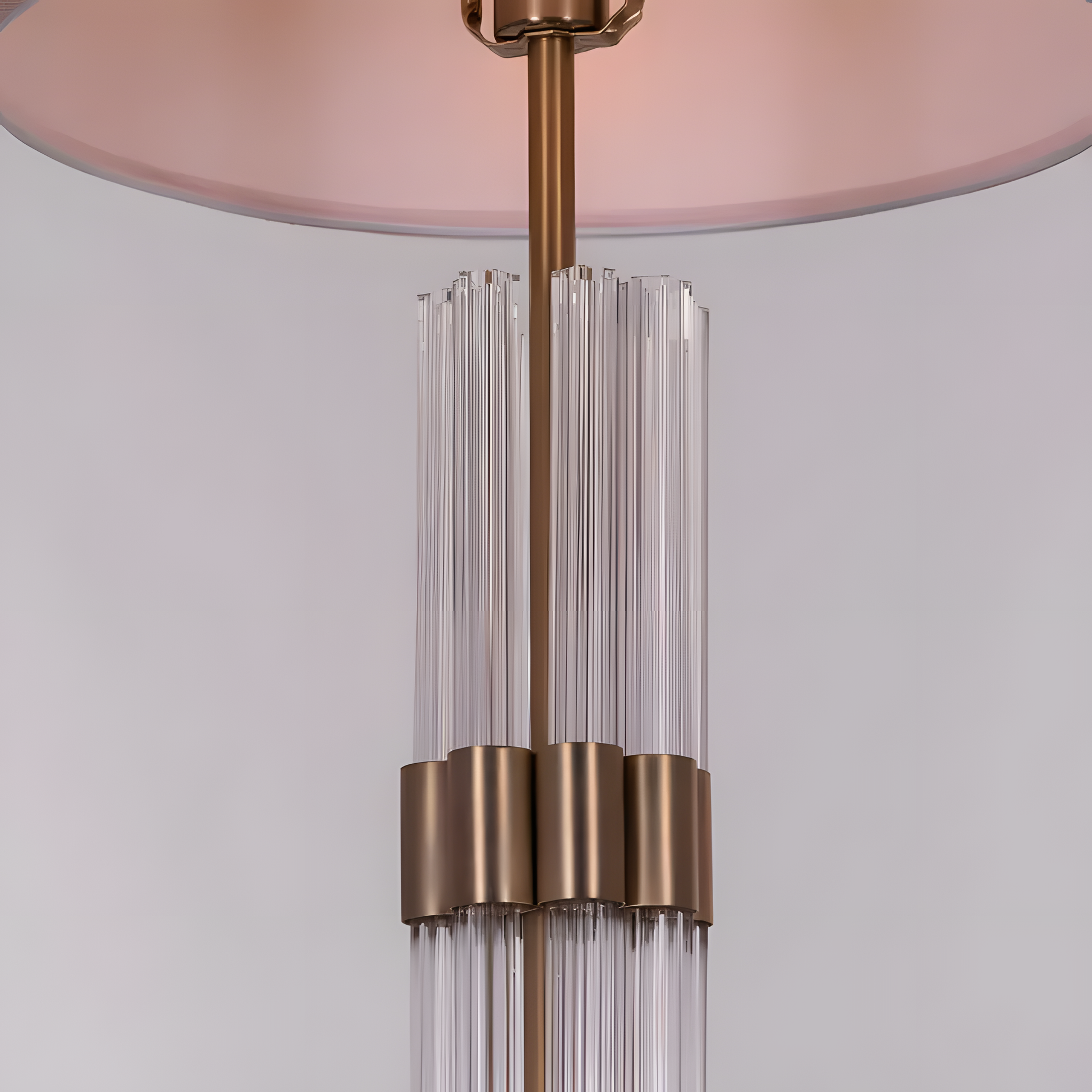 | Product Material | Metal Frame Electroplated in Gold Finish, 6 Glass Crystal Cylindrical Tubes, Fabric Shade Beige Color |