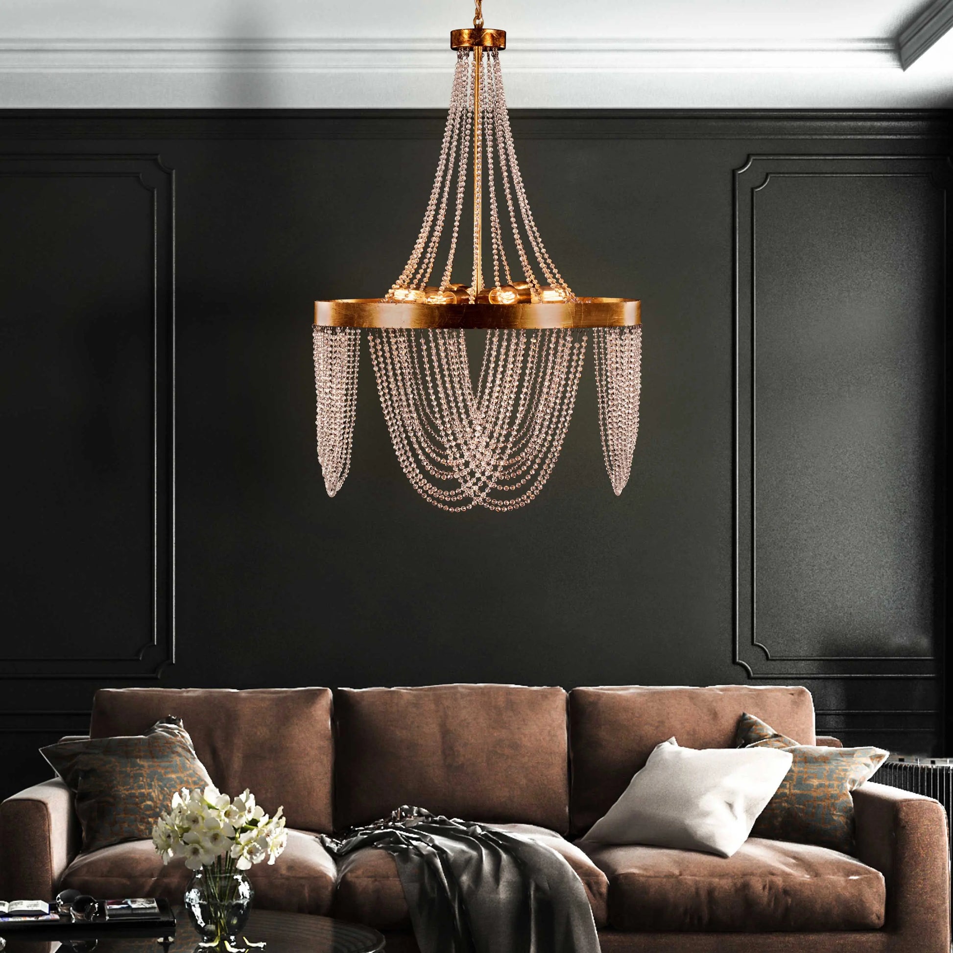 The clarity of the crystals ensures maximum light transmission, while the elegant design ensures the piece retains a sense of airiness and openness. Rather than overwhelming the space, it complements and enhances it, making the room feel warm, inviting, and truly luxurious.