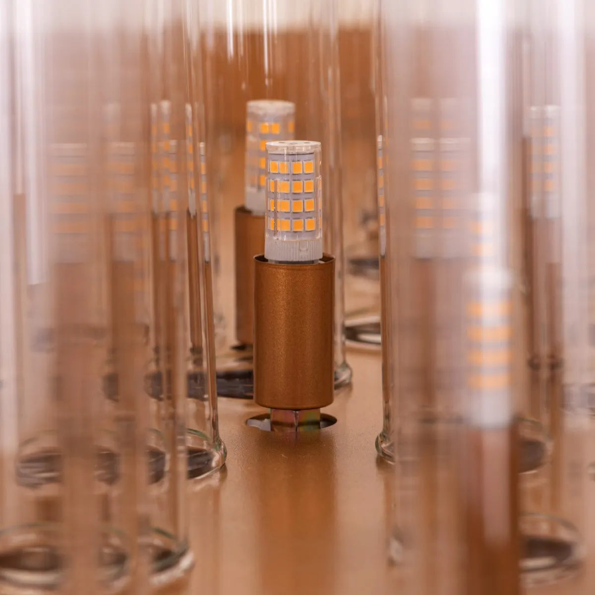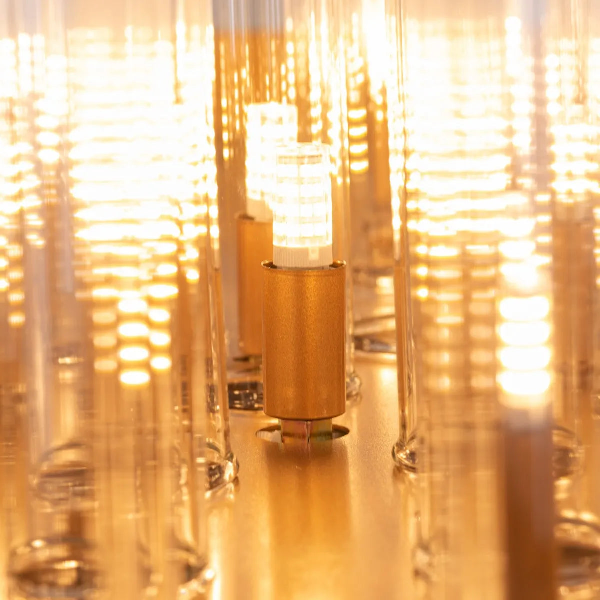 This chandelier stands out with its unique glass tube design, creating a stunning visual effect that captures attention. The meticulously crafted glass tubes are arranged in a circular pattern, reflecting light beautifully and creating a mesmerizing glow throughout your space. The chandelier not only provides ample illumination but also adds a touch of drama and sophistication to any room.