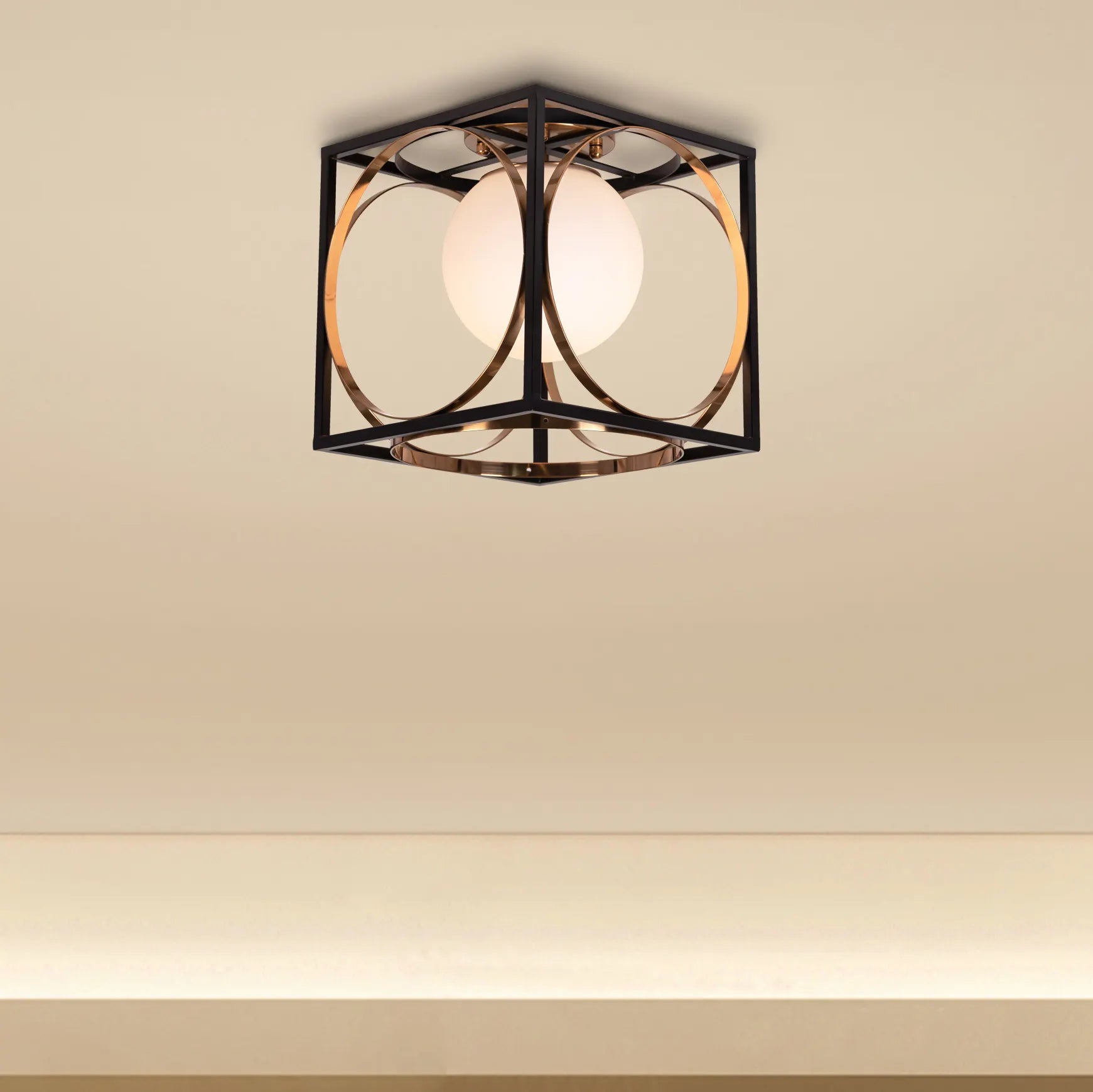 The Block Party Gold boasts a sleek, contemporary design that complements a wide range of interior styles. Its low-profile form factor ensures it doesn't overpower your ceiling while still making a statement. The unique geometric pattern adds visual interest, casting beautiful shadow plays when illuminated.