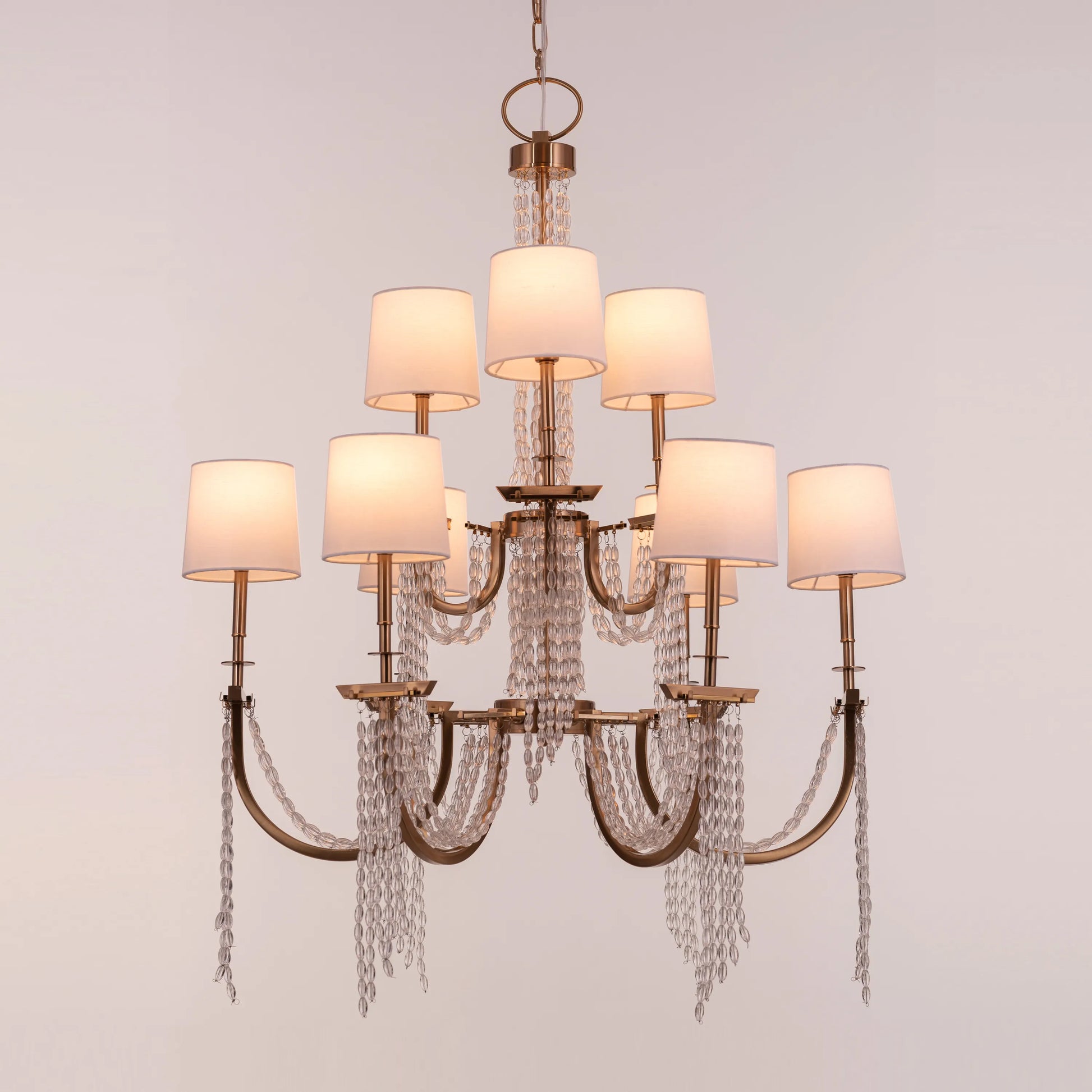 The chandelier is ideal for various spaces, including dining rooms, living areas, and grand entryways. Its gold finish adds a touch of warmth and sophistication, ensuring it complements a variety of interior styles from traditional to contemporary. The intricate metalwork and precision-cut crystals reflect light beautifully, creating a dazzling display that brightens any space.