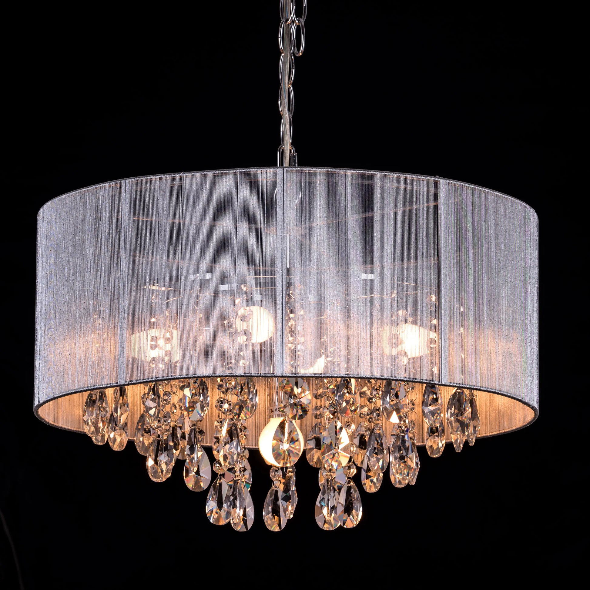 | Product Material | Fabric Shade in Silver Finish, Hanging Crystals, Metal Frame in Chrome Finish. |