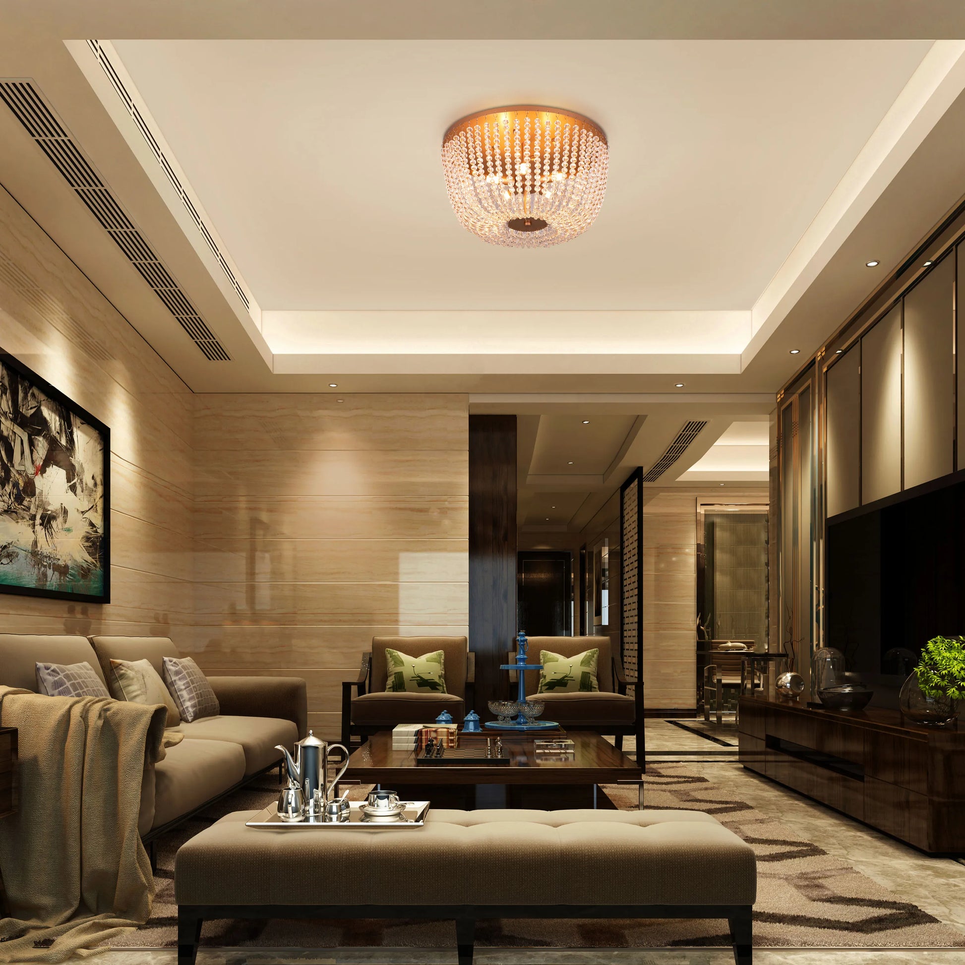 Whether you're hosting a formal dinner party, enjoying a quiet evening at home, or simply want to elevate your everyday living space, this ceiling light sets the perfect mood. Its ability to create a warm, inviting glow makes it ideal for intimate gatherings, while its dazzling crystals add a touch of glamour to special occasions.
