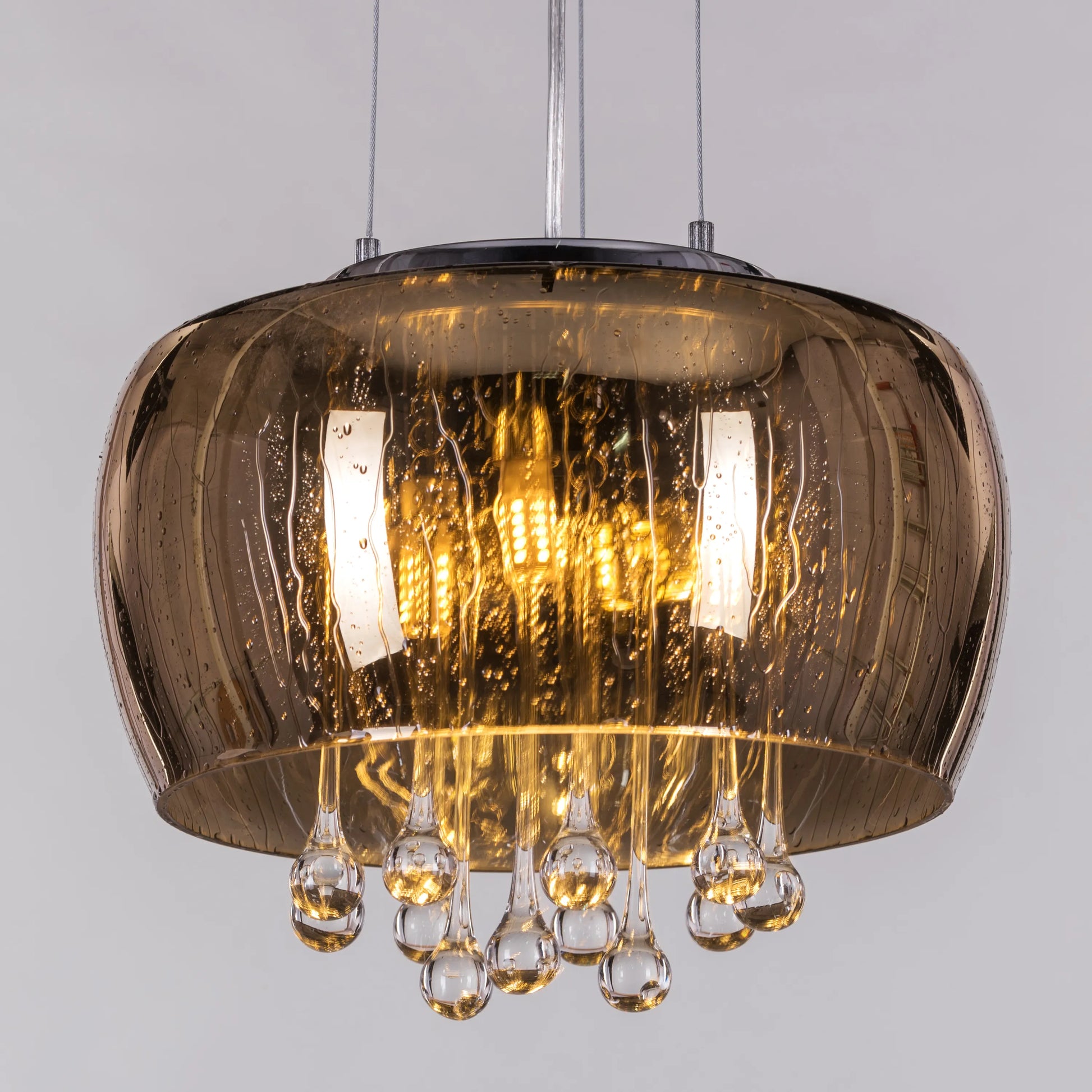 | Product Material | Glass Shade in Gold Finish with Water Drop effect. Hanging Crystals. |