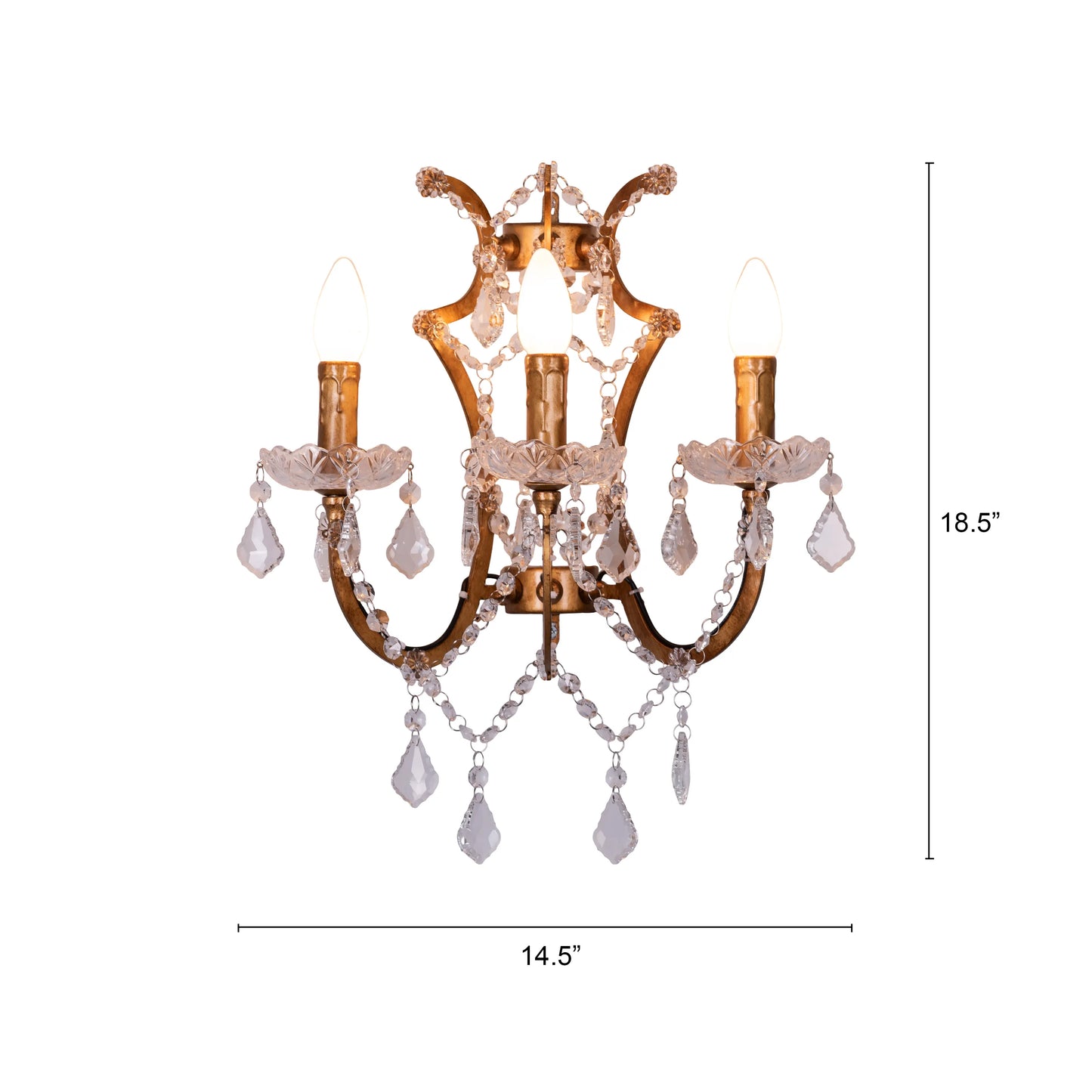 | Package Contents | 1 Premium Antique Gold Finished Crystal Wall Light. |