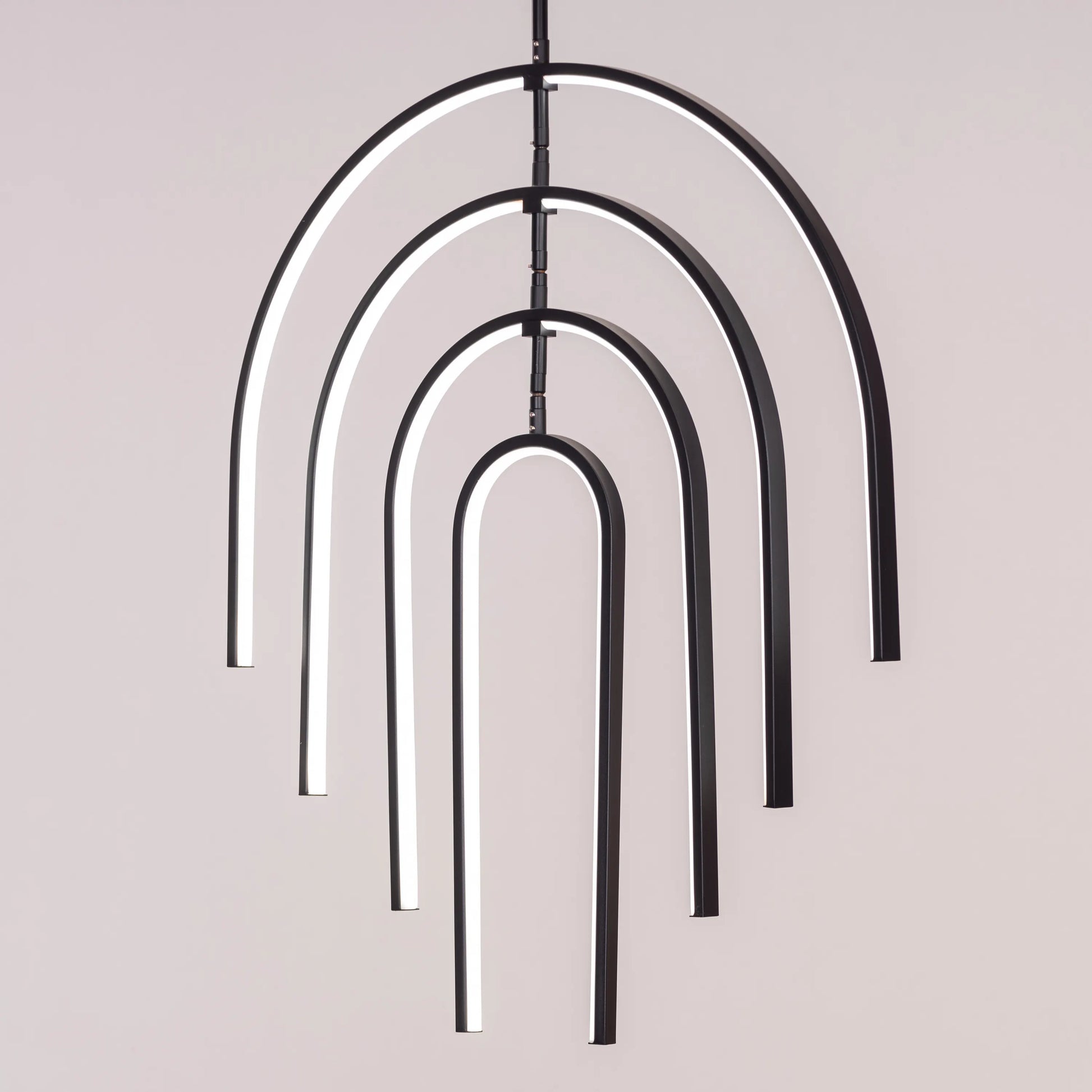 Transform your space into a canvas of light and color. The Heatwave Chandelier isn't just about illumination; it's about creating an immersive experience that engages the senses and elevates your interior design to new heights. Embrace the future of lighting with this sophisticated, tech-forward chandelier that's designed to impress and engineered to perform. Make a bold statement and take control of your ambiance with the Heatwave Black 3 Color Built-In-LED Chandelier – where innovation meets illumination.