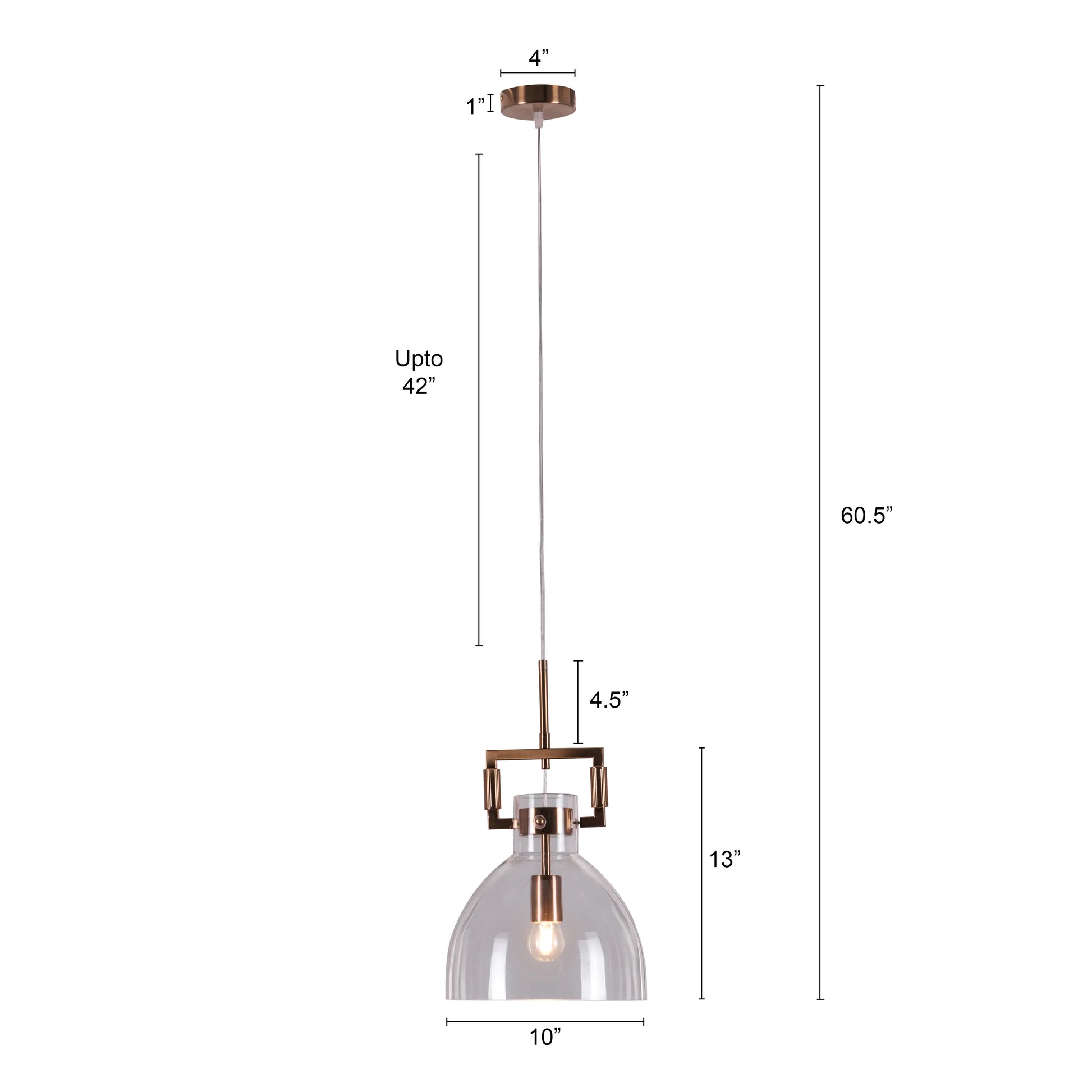 | Product Dimensions | Overall Dimensions- Height: 60.5" Length: 10" Width: 10" Frame Dimensions- Height: 13" Diameter: 10” Ceiling Cup Dimensions- Height: 1" Diameter: 4" Cord Length: 42" |