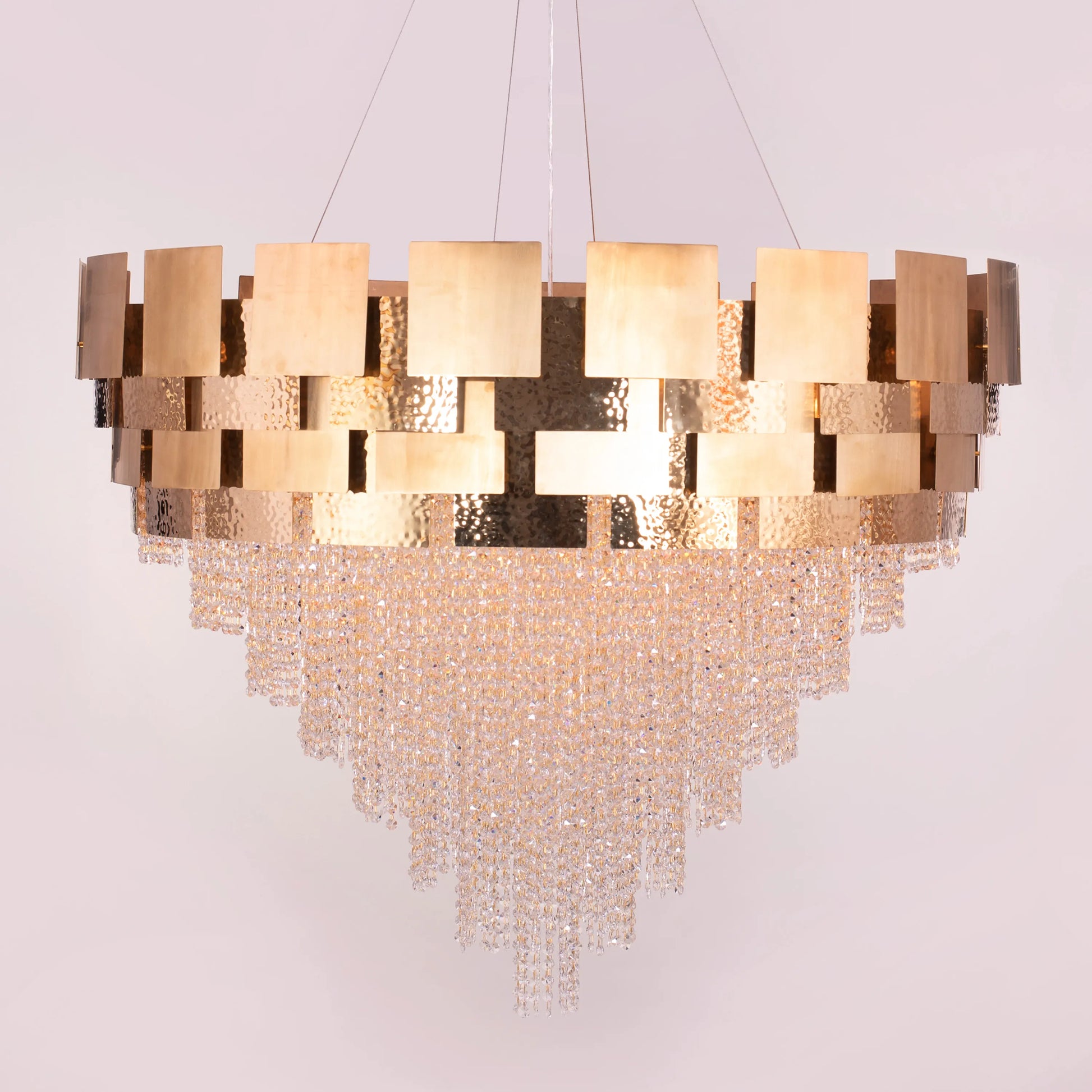 One of the standout features of this chandelier is its meticulous craftsmanship. Each crystal is carefully positioned to maximize light reflection, casting a radiant and inviting glow throughout your space. The chandelier's design is both intricate and captivating, creating a harmonious and visually striking structure that serves as a focal point in any room.