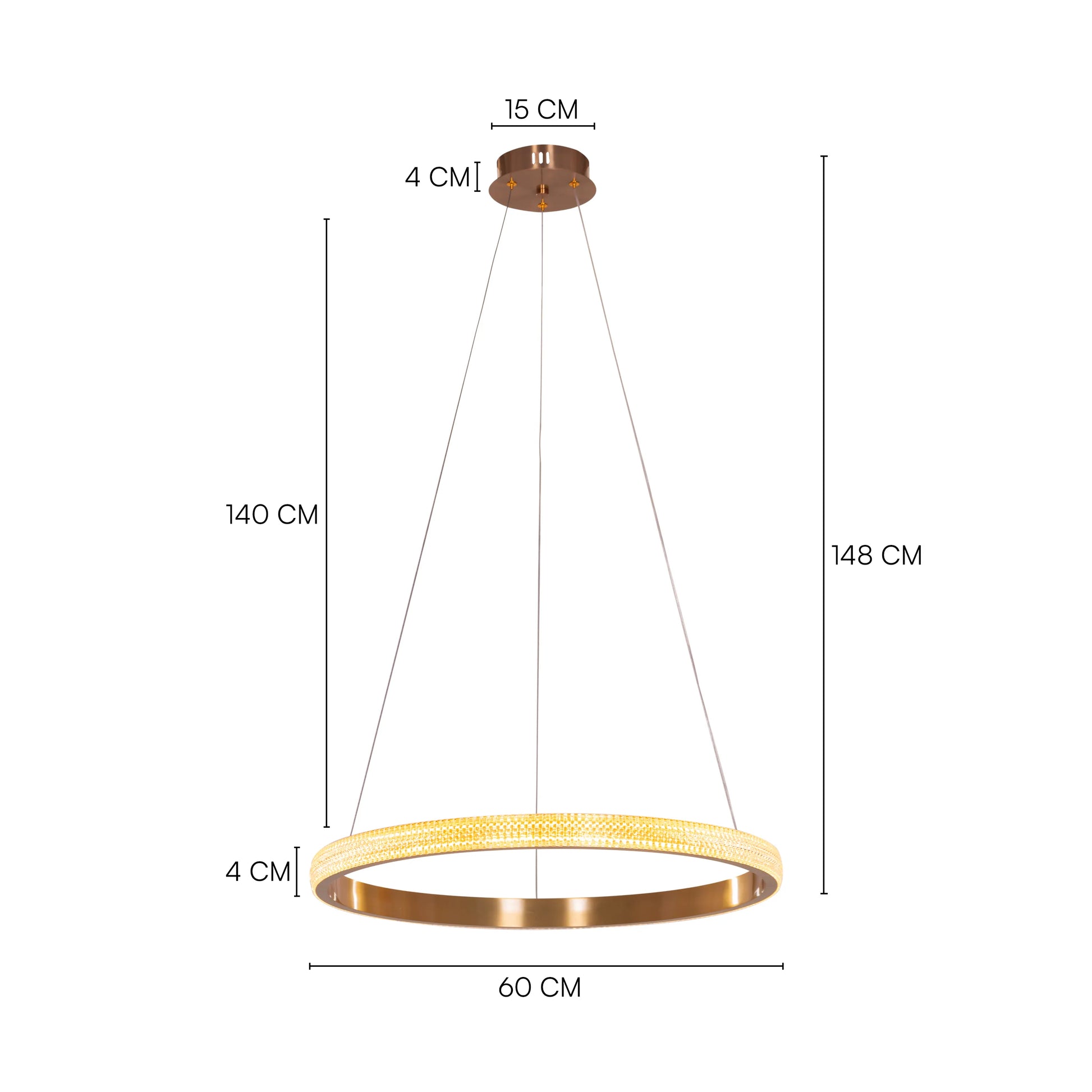 | Product Dimensions | Overall Dimensions - Height: 148 cm (58") Diameter: 60 cm (23.5") Frame Dimension - Height: 4 cm (1.5") Diameter: 60 cm (23.5") Ceiling Plate Dimension - Height: 4 cm (1.25") Diameter: 15 cm (6") |