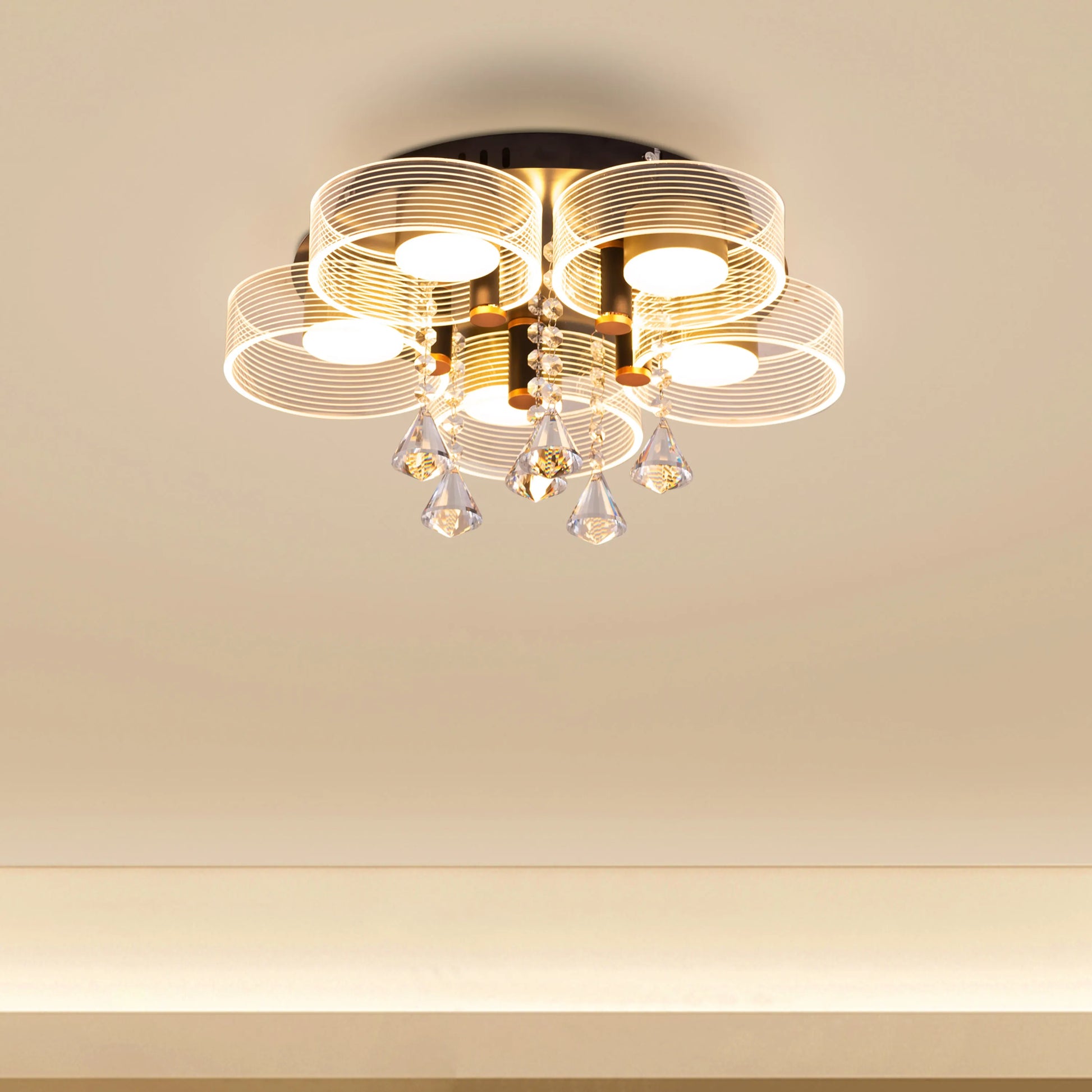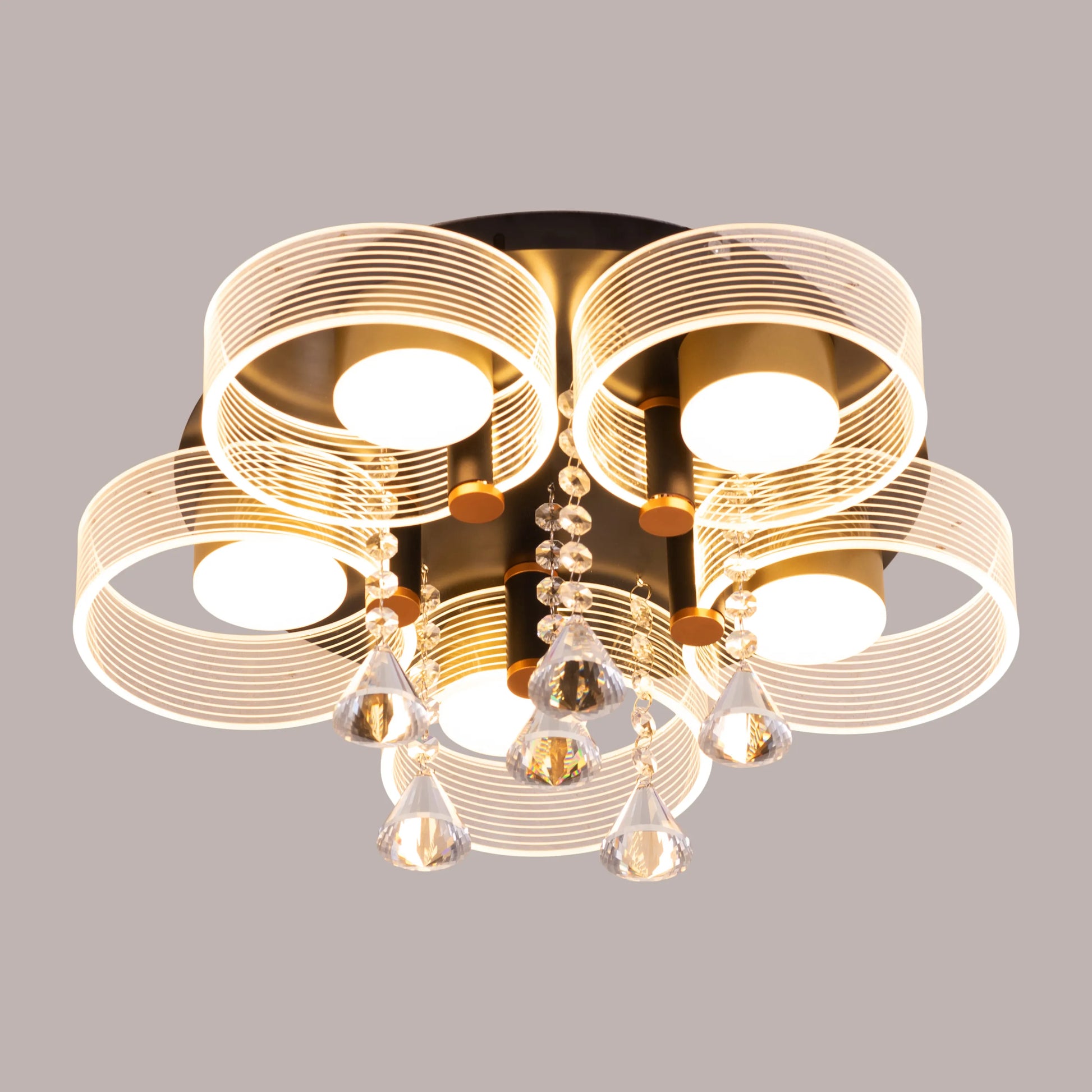 Meet And Greet (Gold, Dimmable LED with Remote Control, 5 Head) Crystal Ceiling Light