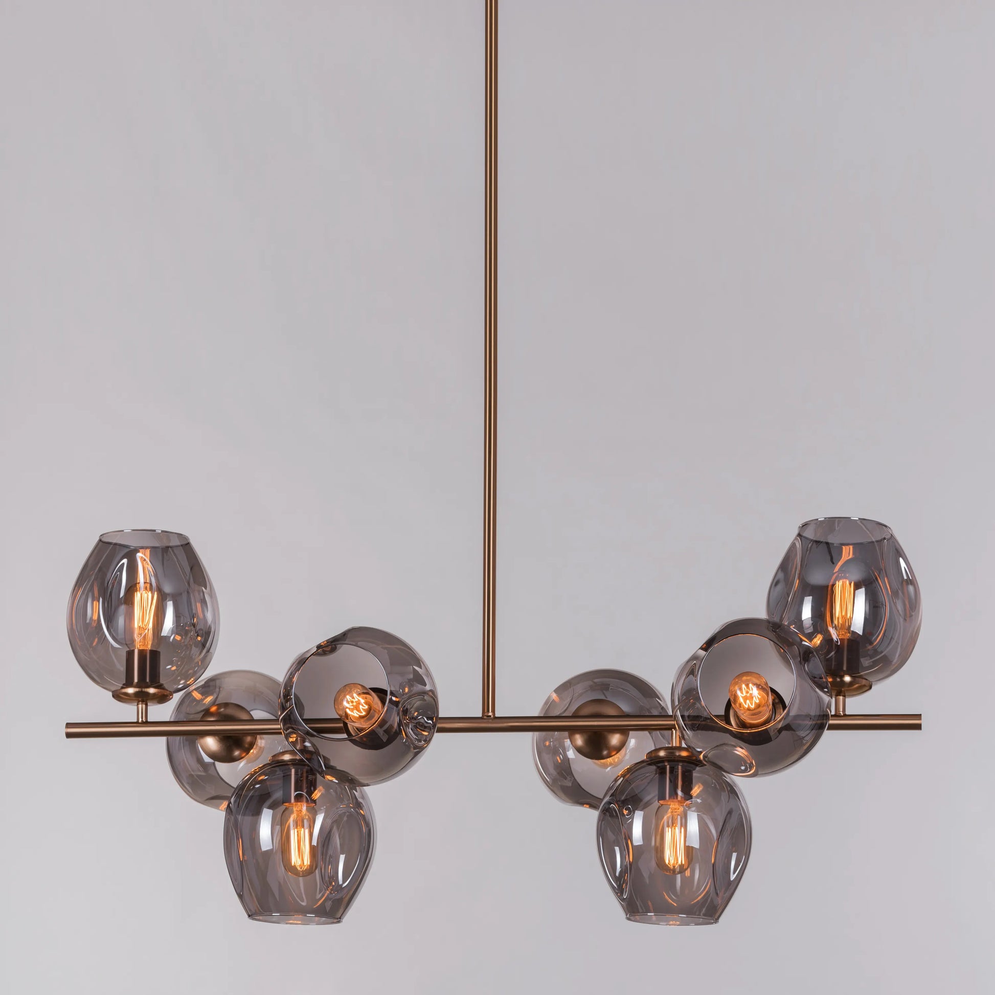 At the heart of this chandelier's appeal is its ability to evoke the feeling of a night full of promise. The arrangement of glass pieces creates a dynamic interplay of light and shadow, reminiscent of the ever-changing urban skyline as night falls. This kinetic quality ensures that the chandelier remains a point of interest and conversation, offering new perspectives and patterns with every glance, much like the unfolding events of an exciting evening out.