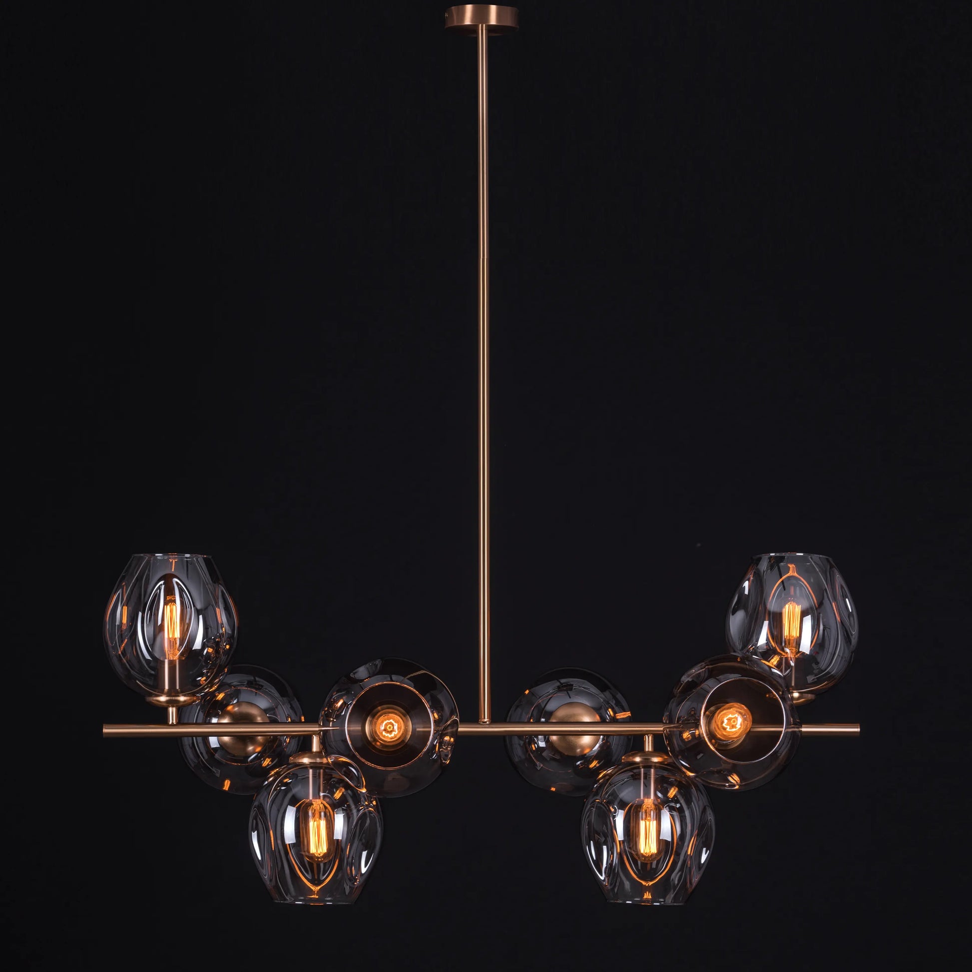 "The Night Is Young" Glass Chandelier is a symphony of glass and light, designed to capture the essence of that magical moment when dusk turns to evening and the world comes alive with potential. Each carefully crafted glass element represents a facet of the night's mystique – from the twinkling of the first stars to the shimmer of city lights awakening. The result is a breathtaking sculpture that transforms any room into a space of wonder and sophistication.