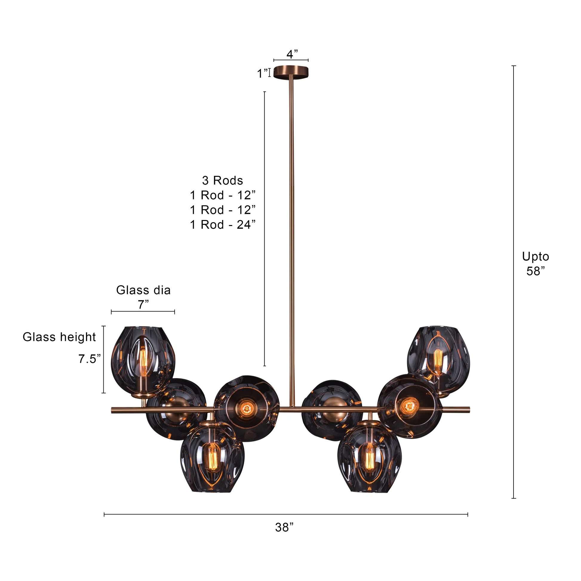 | Product Dimensions | Overall Dimensions- Height: upto 58" Length: 38" Width: 17.5" Glass Dimensions- Height: 7" Diameter: 7.5" Ceiling Cup Dimensions- Height: 1" Diameter: 4" Rod Length: 48" |
