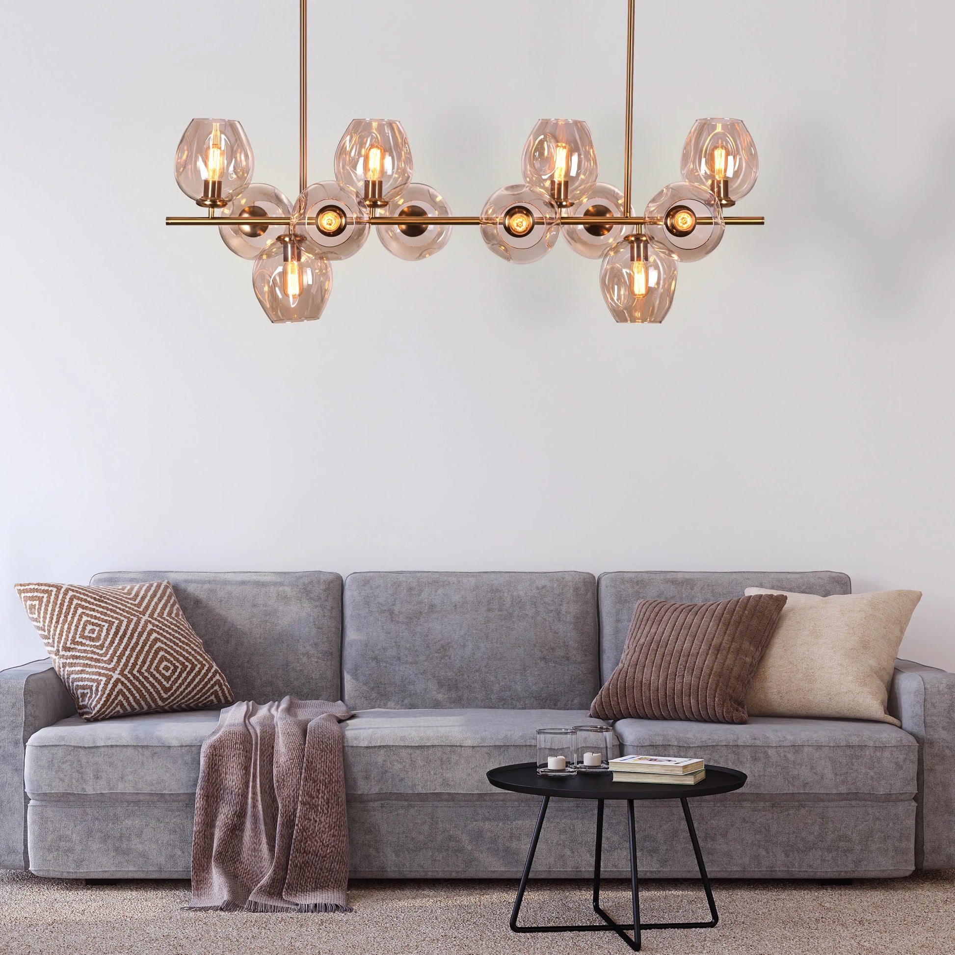 One of the most captivating features of this chandelier is its versatility in different lighting conditions. During the day, natural light interacts with the glass elements to create subtle sparkles and gentle refractions, adding a soft, ethereal quality to the room. As evening falls and the chandelier is illuminated, it comes to life in spectacular fashion, casting a warm, inviting glow that transforms any space into a venue worthy of celebration.