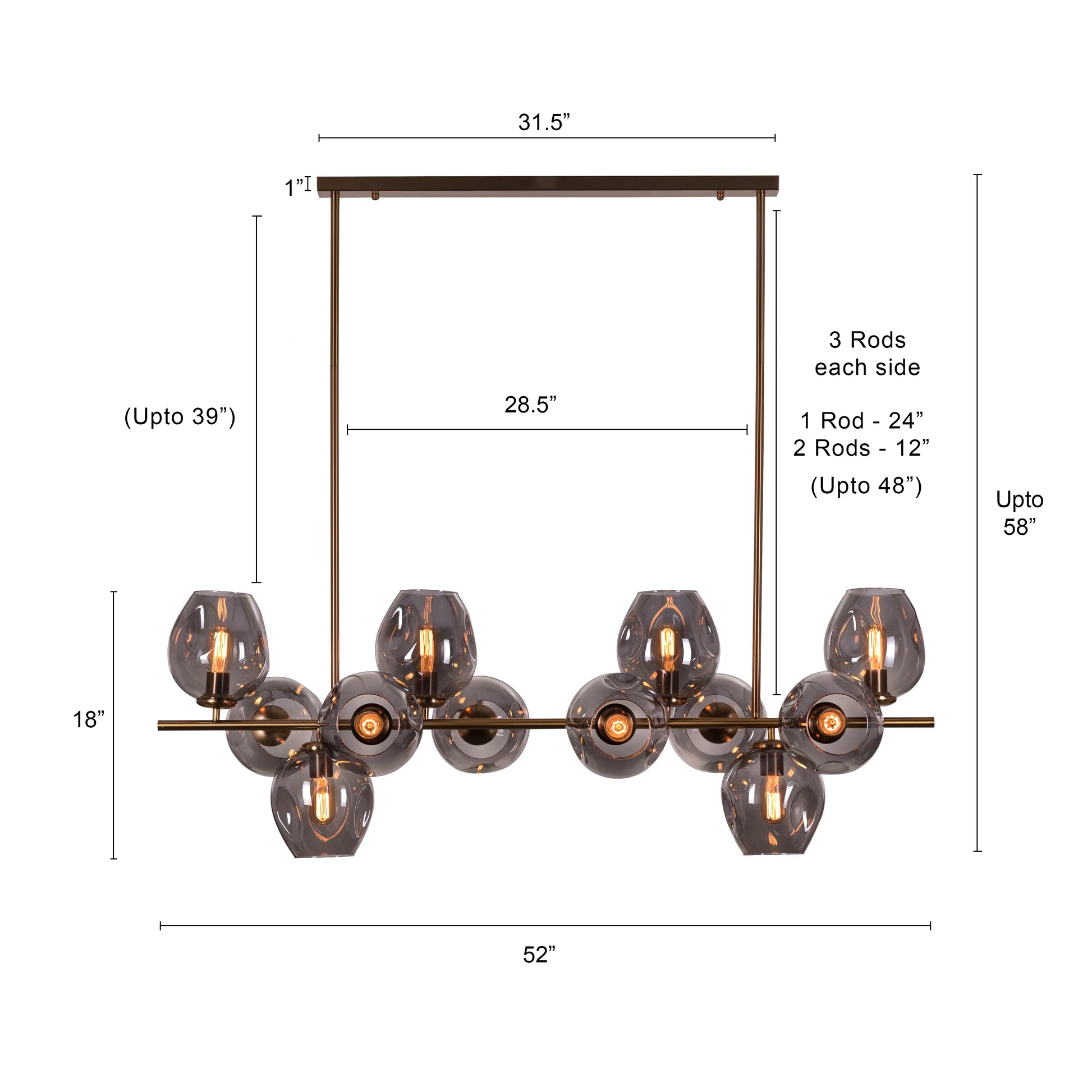 | Product Dimensions | Overall Dimensions- Height: 58" (upto) Length: 52" Width: 18" Glass Dimensions- Height: 7.5" Diameter: 7" Ceiling Cup Dimensions- Height: 1" Diameter: 4" |