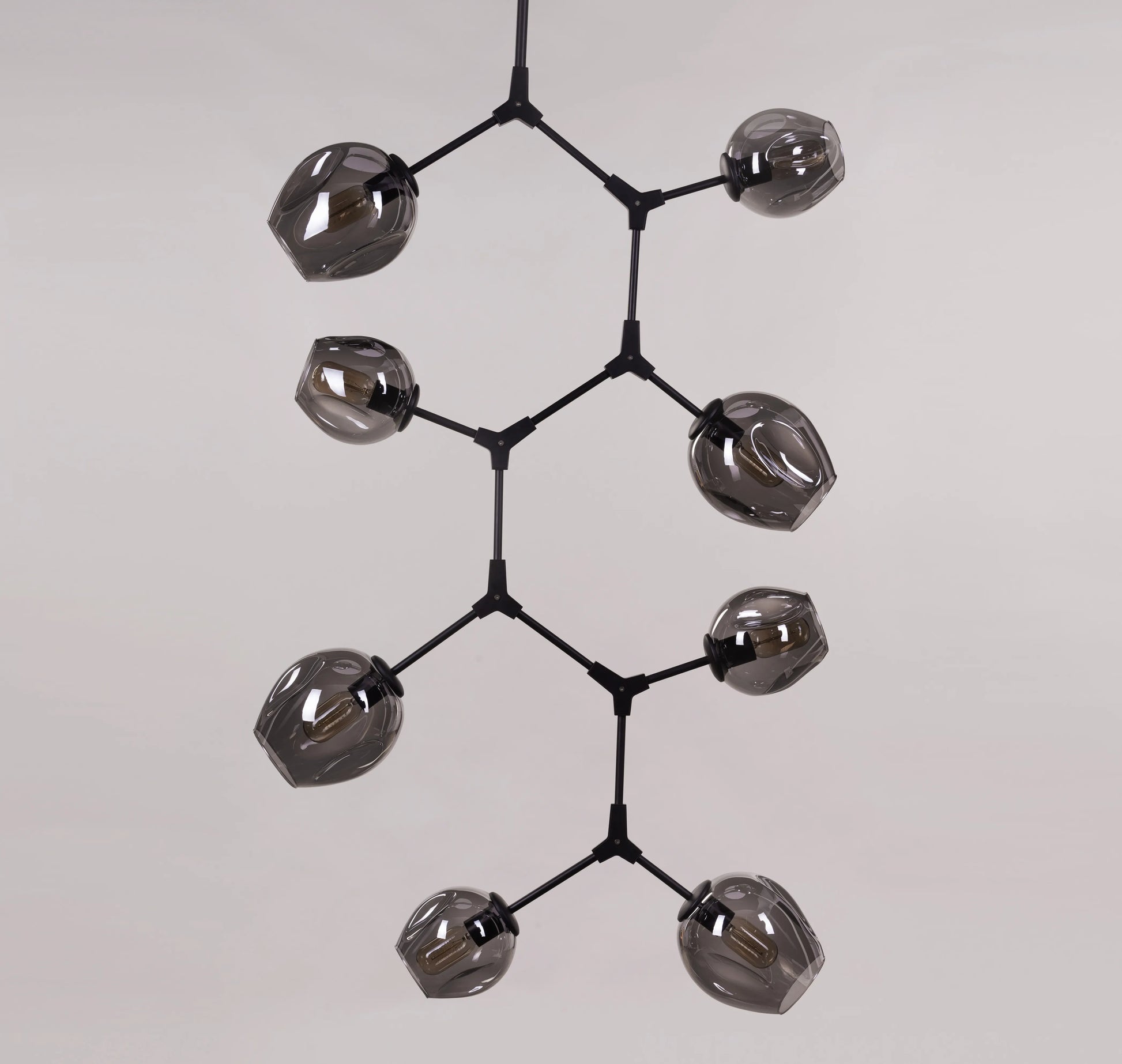High-Quality Materials: The chandelier is crafted from premium materials, including durable glass and sturdy metal, ensuring its longevity and continued beauty over time. The smokey grey glass heads are hand-polished for maximum clarity, while the black frame is designed to withstand wear and maintain its sleek finish.