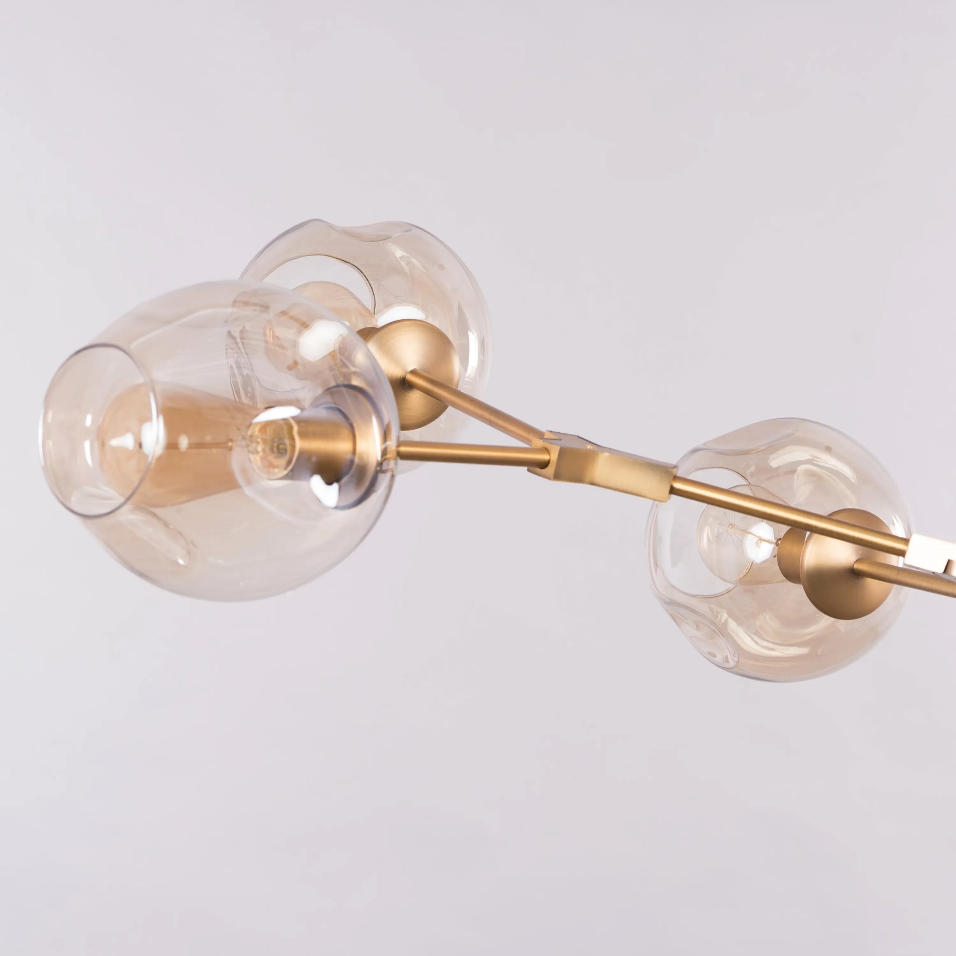 Artisan-Crafted Glass: The amber glass shades are artisan-crafted, featuring a subtle textured finish that catches and diffuses light beautifully. These shades complement the chandelier’s overall aesthetic, ensuring that the light it casts is as much a visual pleasure as the fixture itself. Their amber hue works seamlessly with the gold finish, enhancing the chandelier’s luxurious appeal.