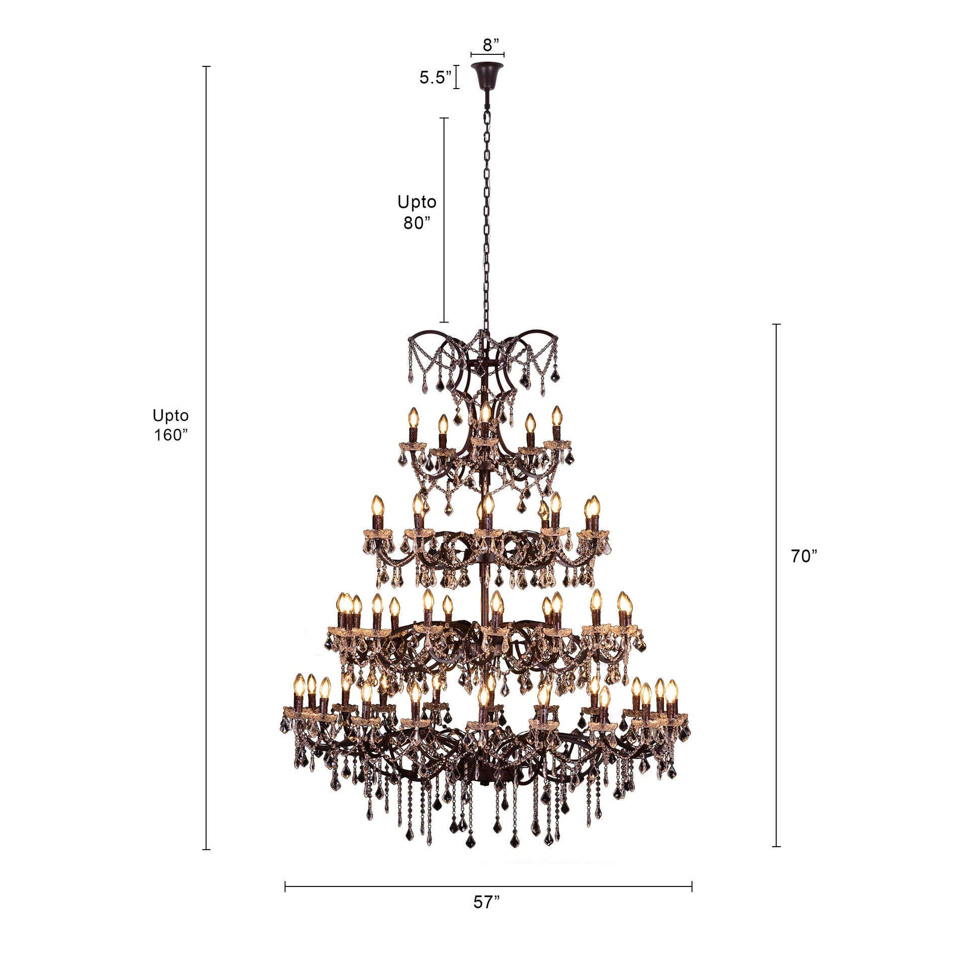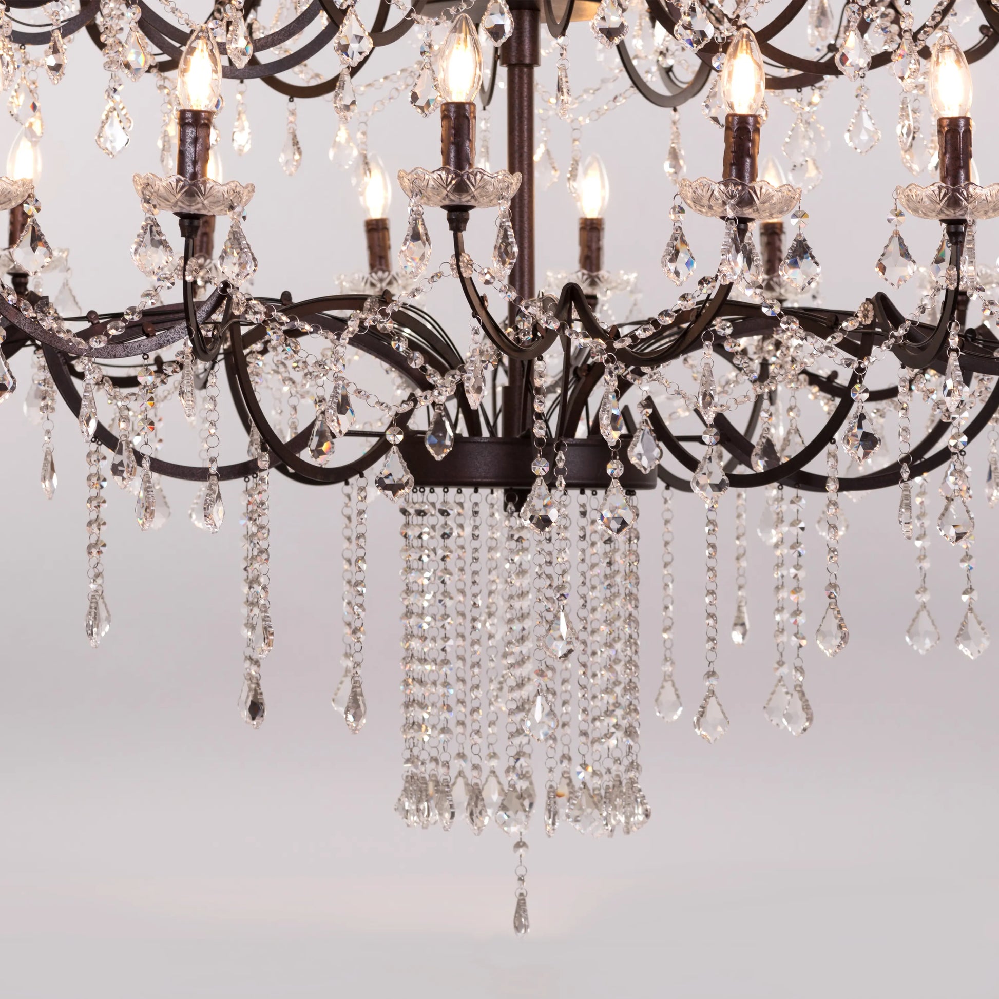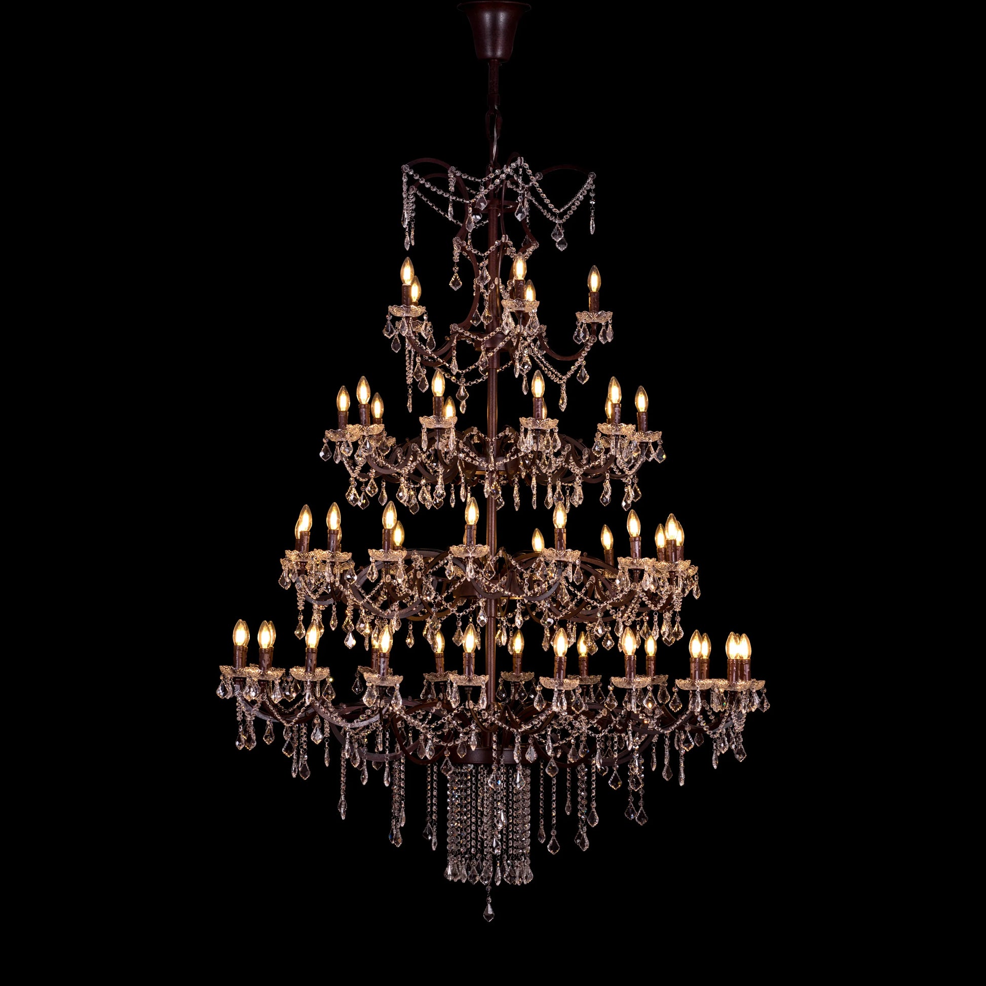 Every aspect of the "Victorian Masterpiece" chandelier speaks to exceptional craftsmanship. The antique rust finish is carefully applied to evoke the patina of age while ensuring durability. Each crystal is hand-hung with precision, and the overall structure is engineered to support the chandelier's impressive size and weight. The result is a lighting fixture that is not only visually stunning but also built to be an heirloom piece.