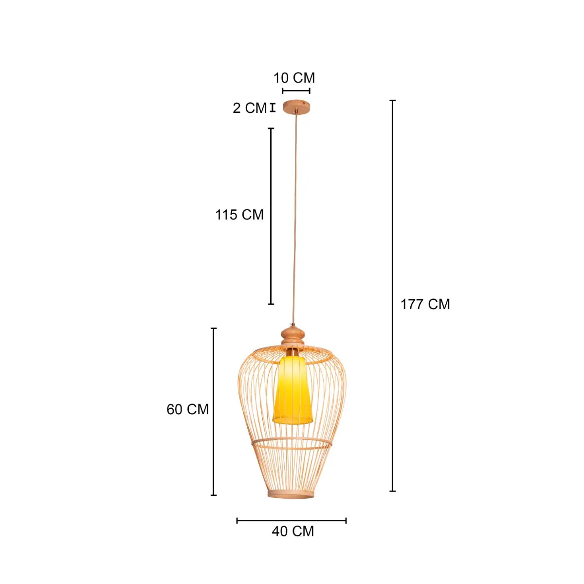 | Product Dimensions | Overall Dimensions- Height: 177 cm (46") (Upto) Diameter: 40 cm (16") Frame Dimensions- Height: 60 cm (23") Diameter: 40 cm (16") Ceiling Plate Dimensions- Height: 2 cm (1") Diameter: 10 cm (4") Wire Length: 115 cm ( |